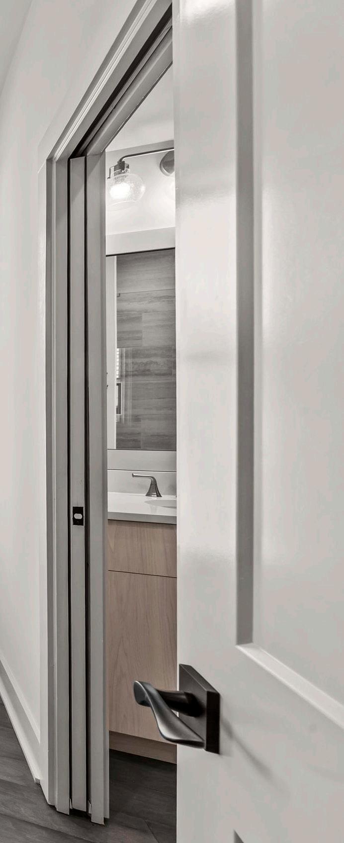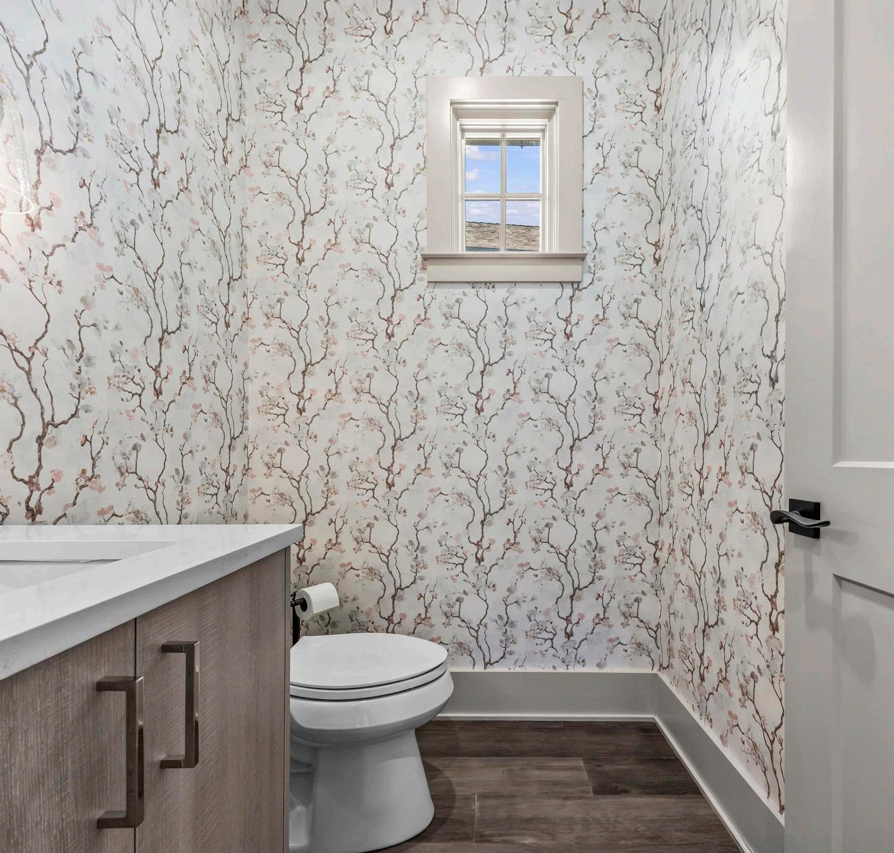 The primary suite is privately situated on the main level and features a beautifully appointed bath and generous closet space. A well-appointed laundry room is conveniently located nearby, and a powder room with a charming wallpaper accent completes the main level.