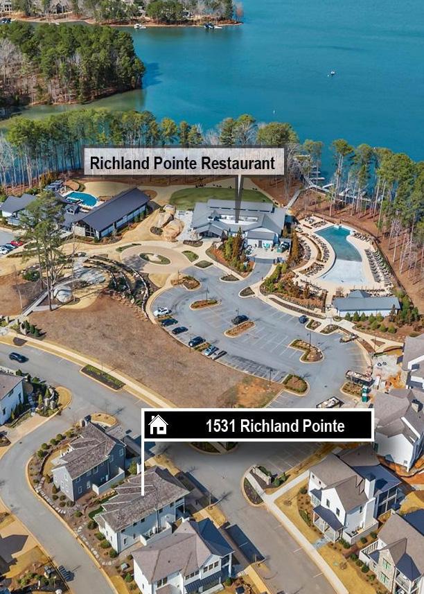 In the heart of Richland Pointe Village, this thoughtfully designed and beautifully appointed newer construction home delivers effortless lock-and-leave living with both lake and community views. A welcoming front porch introduces a striking steel-and-glass entry door, setting a clean, modern tone from the start. Inside, light wood flooring carries throughout the main level, complementing a thoughtful, open layout designed for both daily living and entertaining.