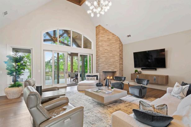 Professionally landscaped with contemporary lakefront design