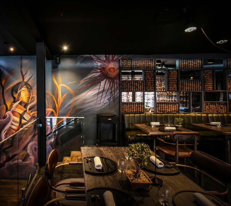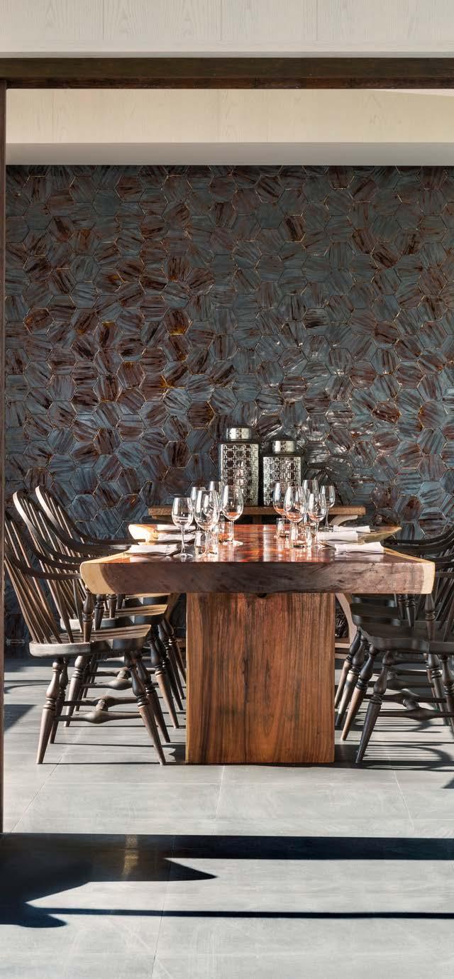 At the core of Burnt Ends is an open kitchen concept, featuring a custom four-tonne, dual cavity oven, and four elevation grills, where chefs expertly smoke, roast, bake, and grill a selection of marketfresh seafood, vegetables, and meats, and daily menus are curated to embrace the enchantment of cooking with wood.