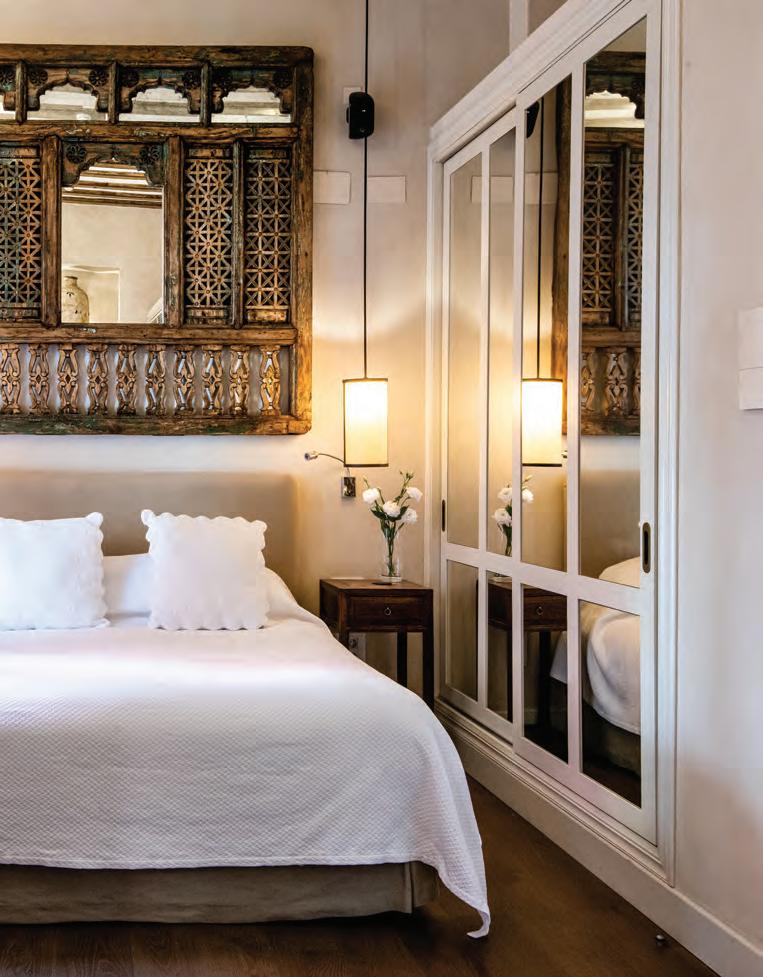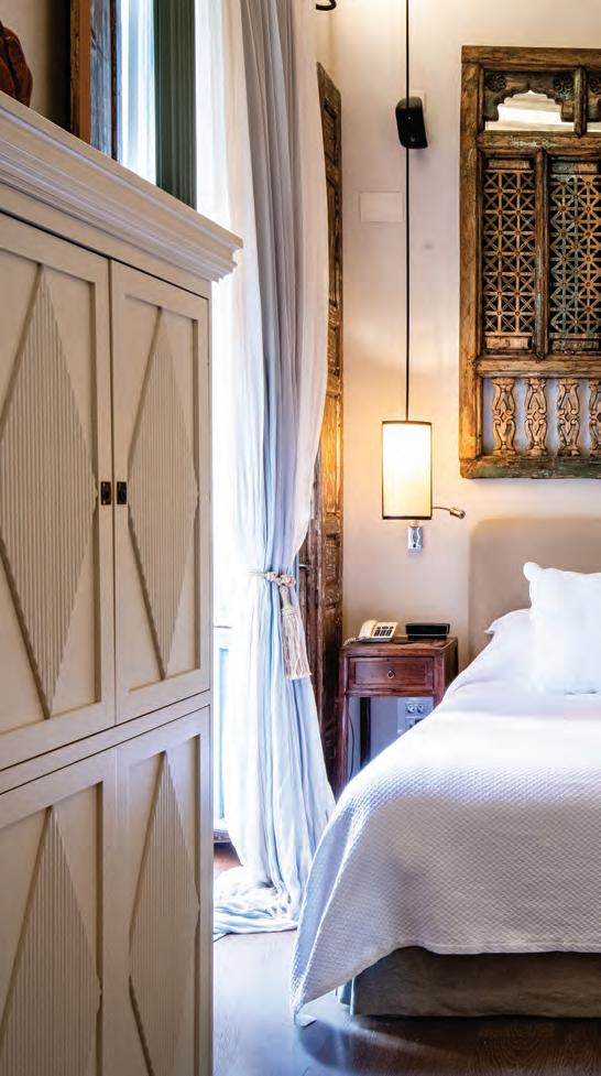 of its original features, including marble columns, Mudéjar-style doors and ancient timber beams. Anything that isn’t exceptionally old has been discerningly handpicked by Kuky Mora-Figueroa to complement everything that is.