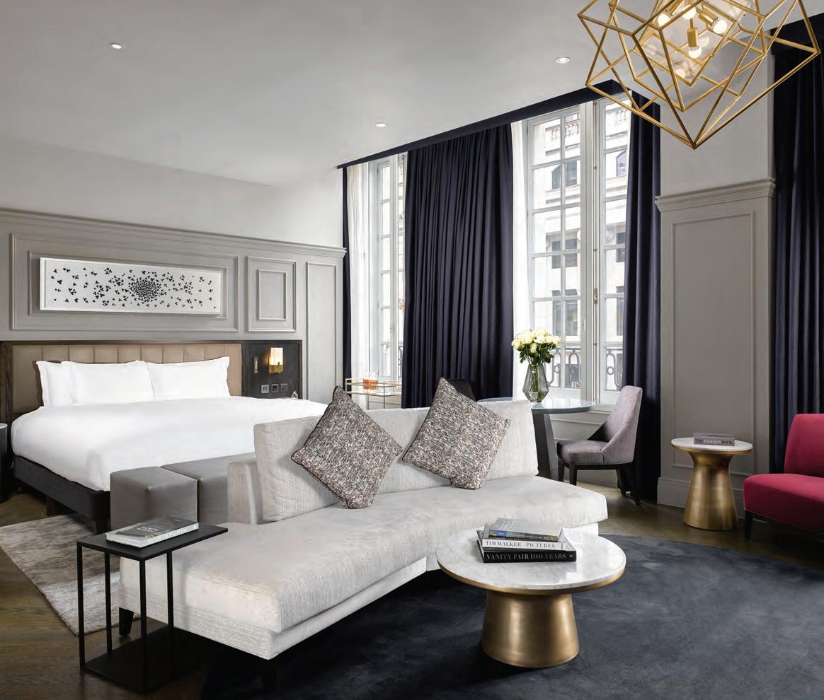 Some other names involved at The OWO: Thierry Despont, the late, great FrenchAmerican architect responsible for revitalising New York’s Statue of Liberty; Zaha Hadid Architects, which has designed a shiny metallic restaurant-pavilion in the hotel’s cobbled courtyard; and Mauro Colagreco, proprietor of Menton’s Mirazur, which, in 2019, was voted the ‘World’s Best Restaurant’. Raffles represents Colagreco’s London debut, as it does for famed Milanese seafood restaurant, Langosteria, buzzy Parisian café, Lapérouse, and cosmetic maison-to-the-stars Guerlain, which has been put in charge of the hotel’s subterranean spa (it’s large enough to accommodate a 25-metre swimming pool).