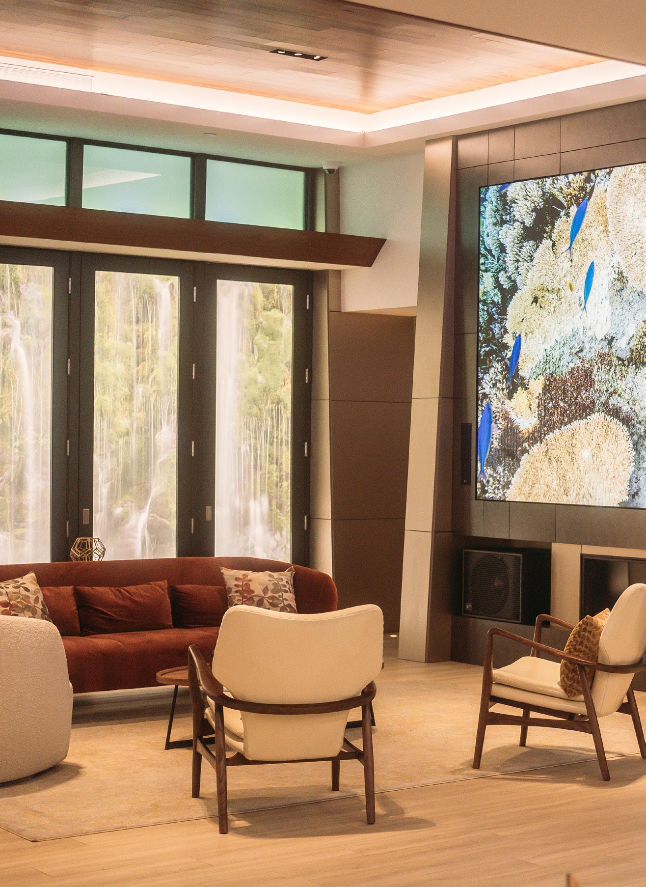 Entertainment spaces are no longer isolated media rooms but flexible environments, capable of hosting a game day gathering, displaying digital art, or delivering a cinematic experience, all without altering the character of the space. Luxury, in this context, is not additive. It is subtractive.