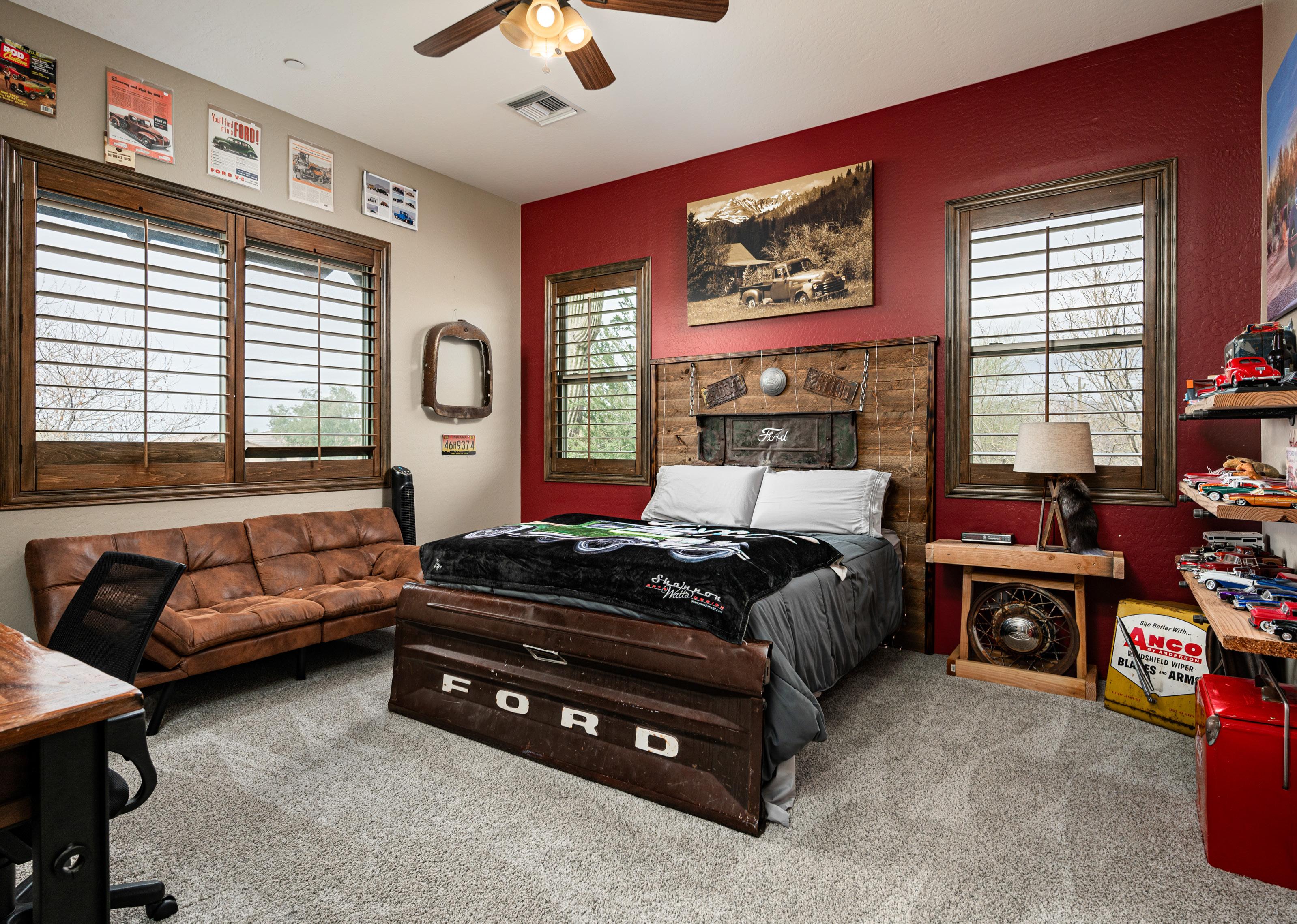 Resting on about two acres with unobstructed mountain views, this bespoke property is more than a residence. Designed for the enthusiast with an appreciation for craftsmanship, character, and space, the home features a private showroom-style garage and workshop ideal for classic car collectors, hobbyists, or visionaries looking to bring their passion home.