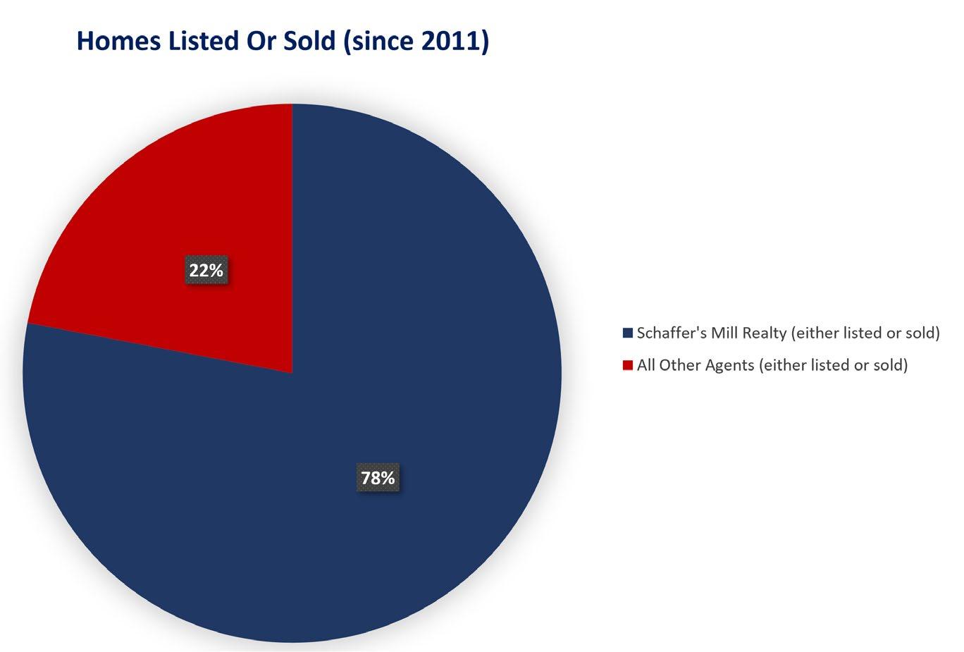 Being located inside the gates of Schaffer’s Mill provides significant advantages to our team. Every year, over 400 families drive up to the front gate seeking real estate information regarding Schaffer’s Mill. Being located onsite (and open 7-days/week), we’re able to show these potential buyers around Schaffer’s Mill while their interest is at its peak. No other realty company has access to interested traffic on demand like we do, which means we’re not waiting to generate traffic for your home – we have potential buyers visiting us daily, which can translate to a quicker sale of your property. It’s no wonder that we’re involved in nearly 8 out of 10 transactions each year within the gates of Schaffer’s Mill.