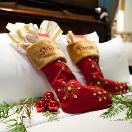 A Venetian holiday experience begins as you open the door to your suite! Their "Suite Experience" creates a homelike holiday environment right inside your room! For a reasonable fee, you can enjoy a beautifully decorated 7-foot designer holiday tree, custom embroidered stockings, Sugarfina Christmas tree and Merry berries treat boxes, peppermint bark white chocolate bars, holiday traditional poinsettia decorated with fresh seasonal evergreens and ornaments, a holiday centerpiece with fragrant, traditional, seasonal greens, and a holiday bedside floral arrangement, all for under $750 (according to their website)
