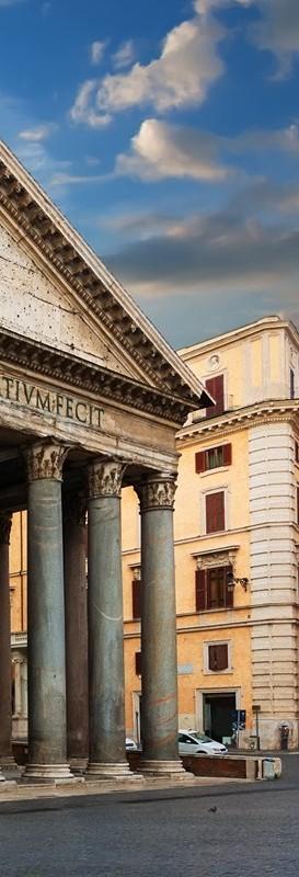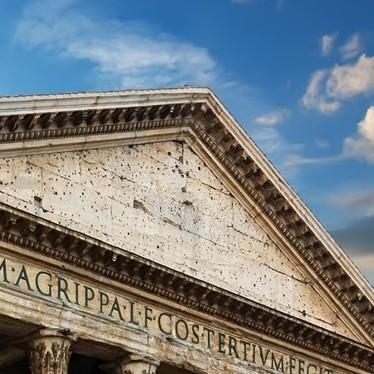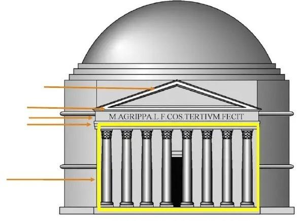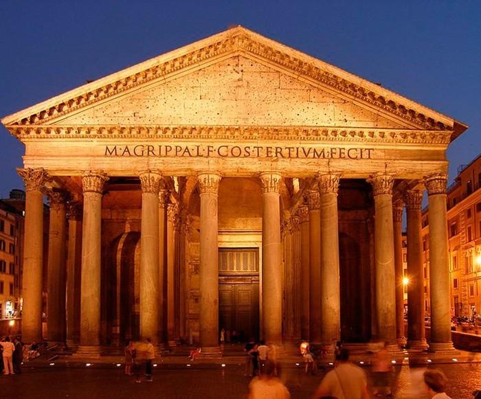 El Panteón de Roma fue construido en el 118 d.C., durante el reinado del emperador Adriano. En ocasiones se le denomino como el Panteón de Agripa, quien había sido un importante ministro del emperador Augusto. Esta confusión se debe a la inscripción del entablamento, que refleja el nombre de Agrippa. Reconocer en el entablamento las obras realizadas por Agripa bajo el mandato de Augusto, muestra el carácter de Adriano, así como el reconocimiento que sentía por el reinado del emperador Augusto.
