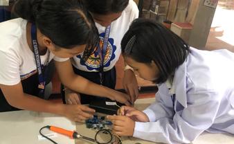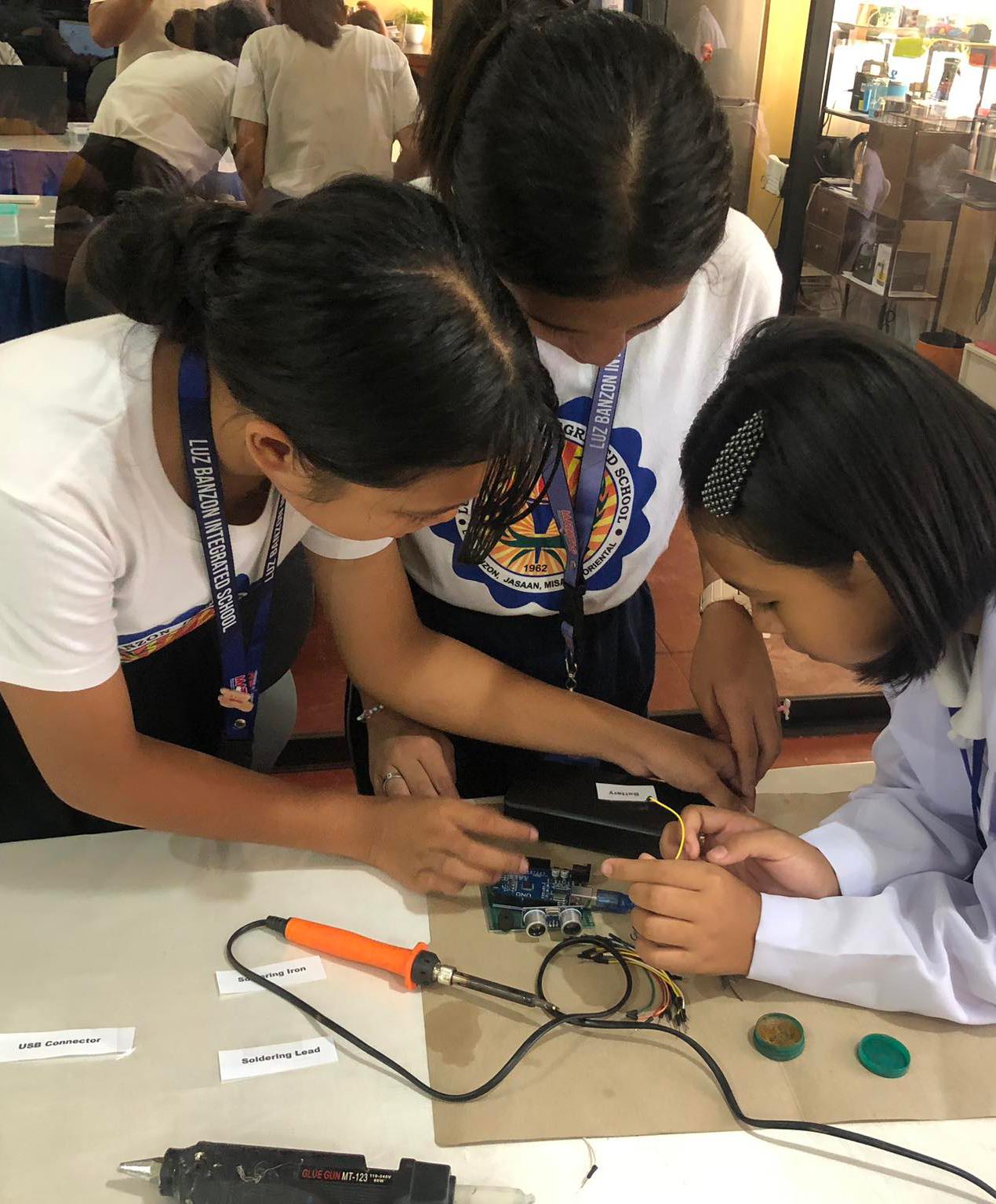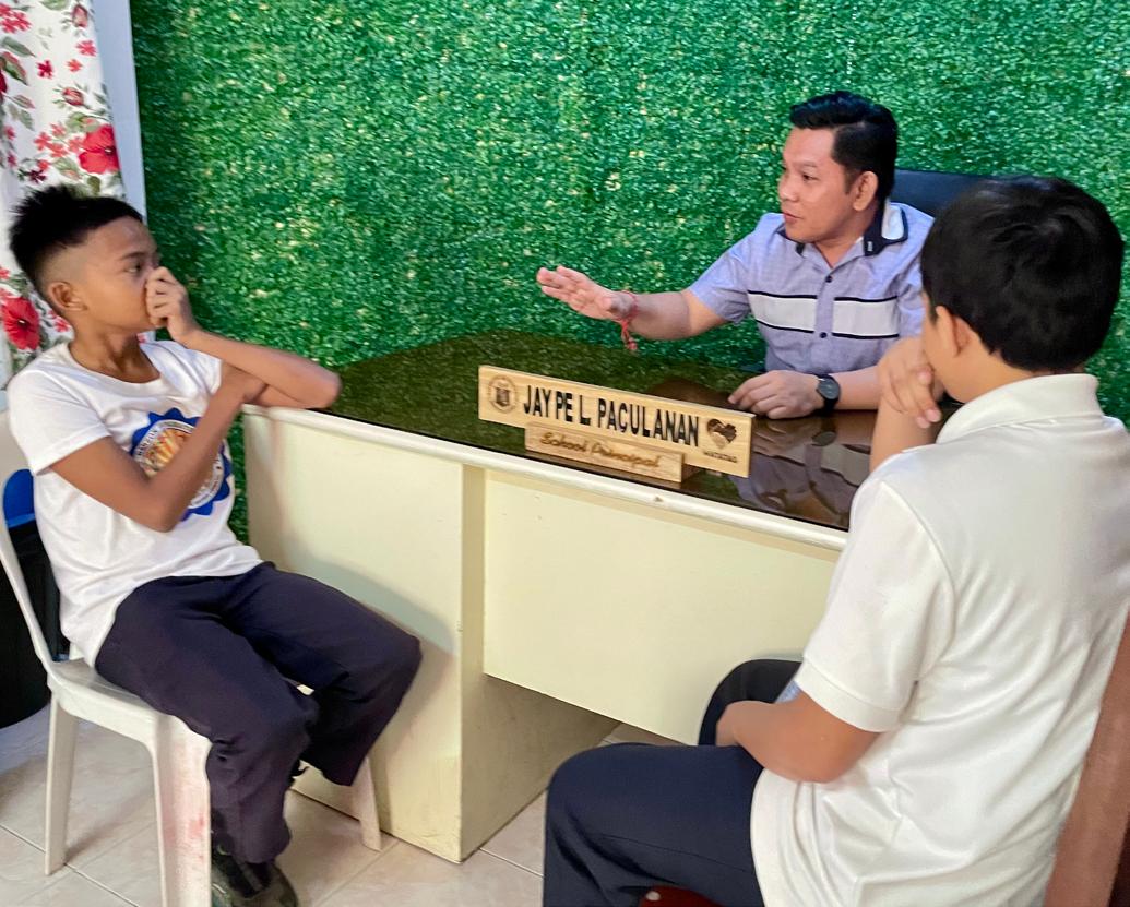 Pilit tikum ang bibig ng mga mag-aaral sa ika-lima at ika-anim na baitang ng LBIS habang iniinterbyu ng kanilang mga guro tungkol pagmamalabis nila sa exit gate ng paaralan nitong huling linggo ng Disyembre, 2024 para mag-abot ng “kikil“ sa mga out-of-school na mga kabataan sa karatig baryo ng paaralan
