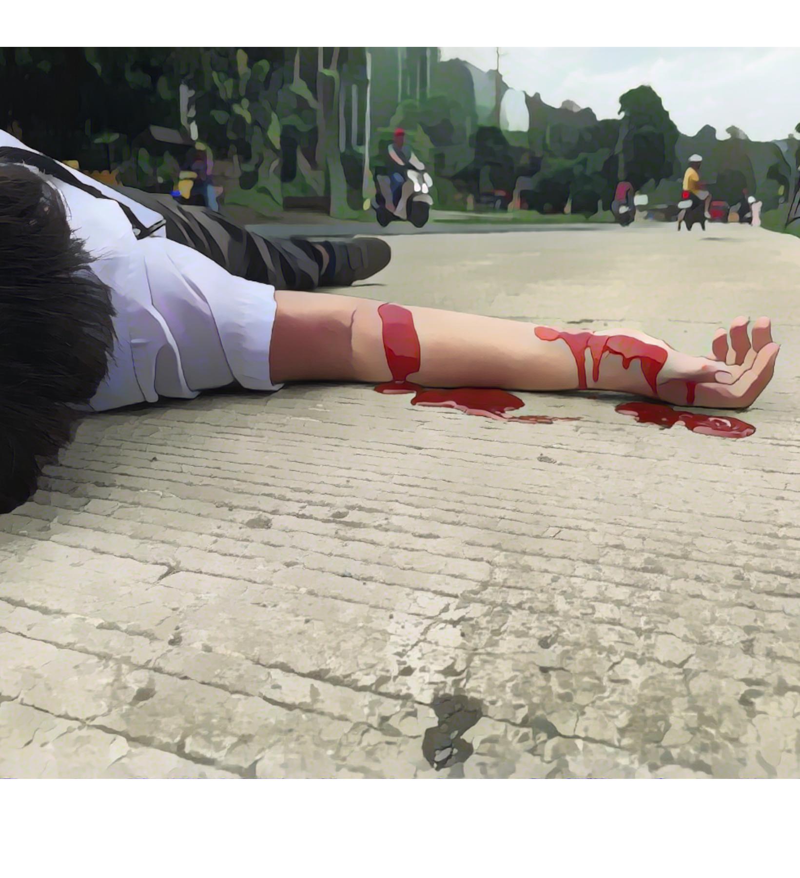 Ang walay malay na si Maryll Cagape, 11, isang Grade Six learner, ay dali-daling binuhat ni Gng. Mag-away ng ito ay nadaganan ng isang motorsiklo habang tumatawid sa pedestrian lane bandang alas 4:00 ng hapon. Wala ng masyadong estudyante ang tumatawid sa kalsada kaya naman tudo ang harurot ng mga sasakyan ng tumatawid dito. Wala ng naka-abang na ronda at traffic aide sa lugar dahil umano sa lagpas oras na ng kanilang trabaho.