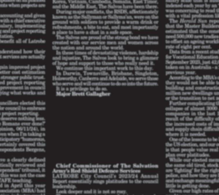 IN January 2026, the Latrobe Valley Express published an article in print and online which identified avictim of child sexual abuse, without her consent. We unreservedly apologise for the distress this caused and have committed ourselves to furthertraining on ethical reporting of violence against women and children.
