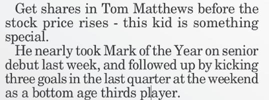 The same has been said of new Trafalgar draftee Tom Matthews, who certainly has good lineage.