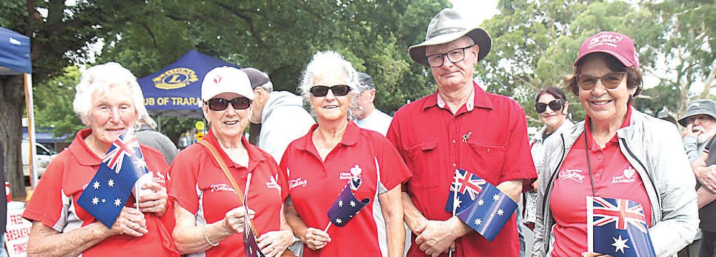 Traralgon HeartFoundation walkersDawnDavidson, RosemaryKirk, Sue Mann, Ian Mann and FayeBaldwin joined hundreds of Latrobe City residents taking partinAustralia Dayfestivities. MORE -PAGE 9