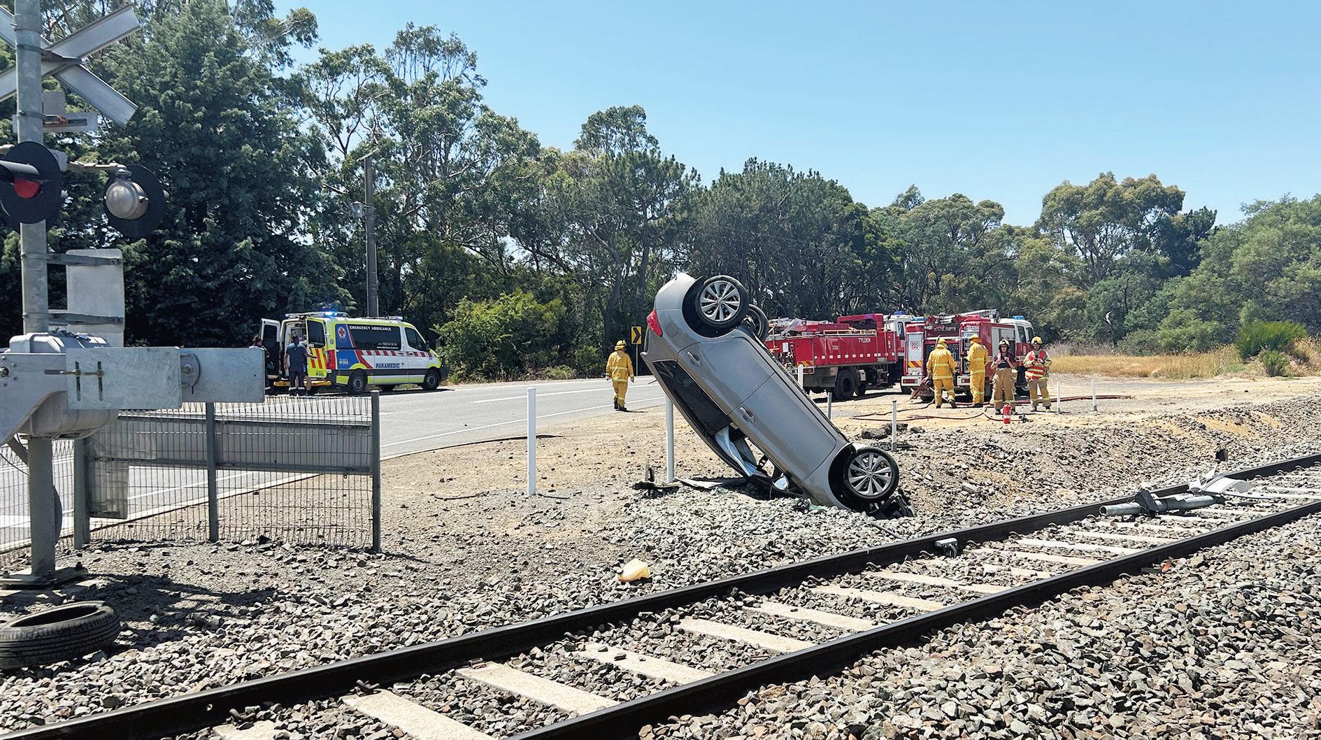 The30-year-old driver from St Albans wastaken to hospital afterhecrashed the car near alevel crossing on Tylden-Woodend Road about 12.30pm last Tuesday afternoon.