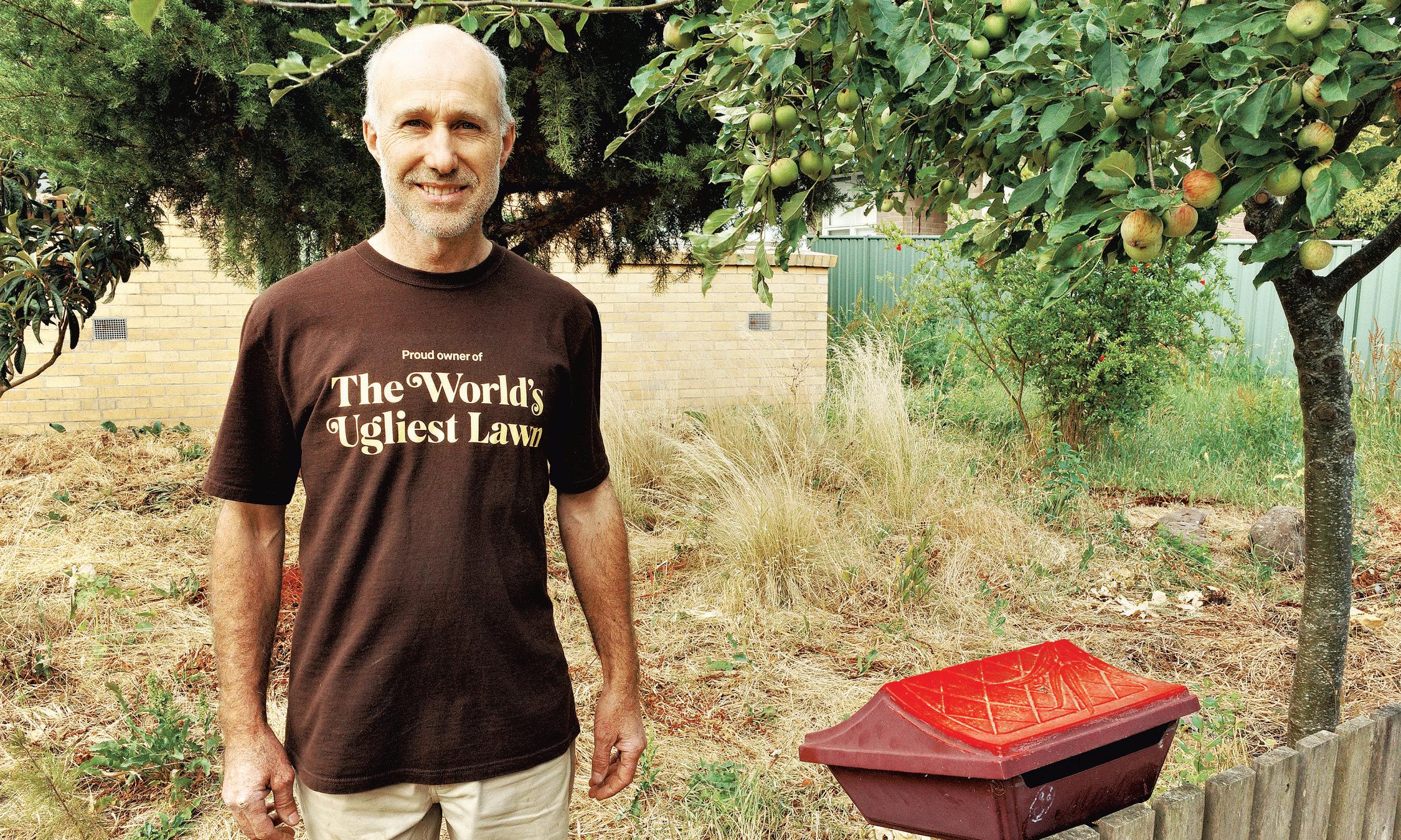 Thecouple passed by because last week they’dread about his lawn in TheGuardian Jarno wasfeatured because he had been crowned this year’swinner of TheWorld’s Ugliest Lawn competition –a global phenomenon thatoriginatedinSweden to promote waterconservation. Thephilosophy is to notwater lawns foraesthetic purposes. AndJarnohas neverwatered hislawn.