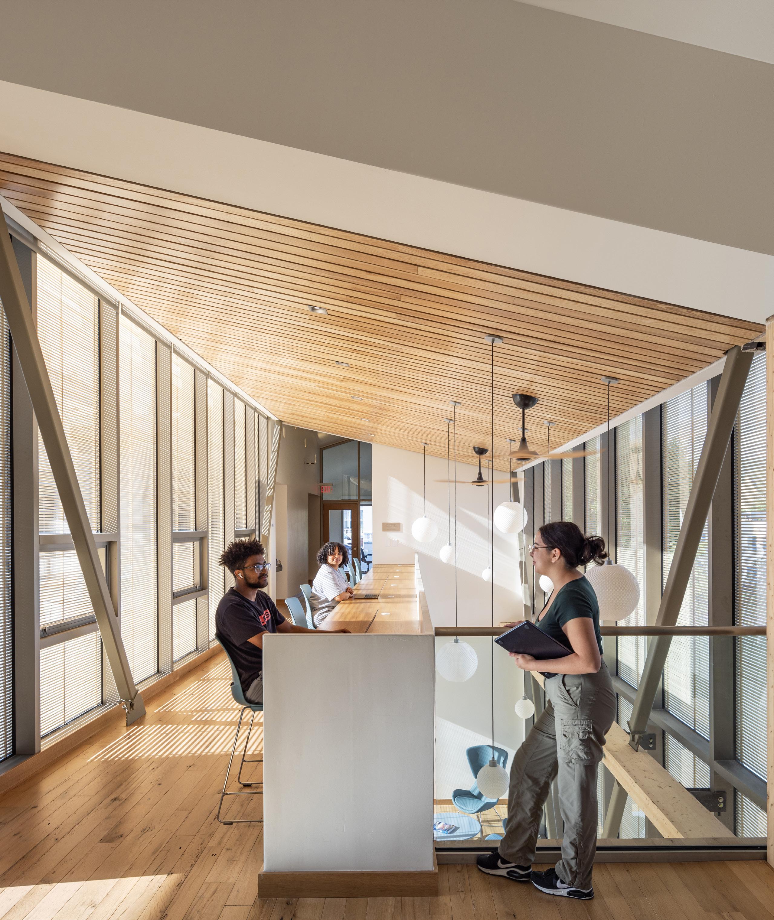 Social, environmental, and economic sensibilities drive our work and practice. For each project, we investigate various techniques and tools to produce long-lasting, innovative, and inspirational design solutions. We are signatories and advocates for 2030 Commitment. We are pioneers in the development of mass timber with the first in the USA large scale buildings for higher education. In house, we lead an active “Green Monsters” group that studies, shares and applies latest sustainable practices for each project.