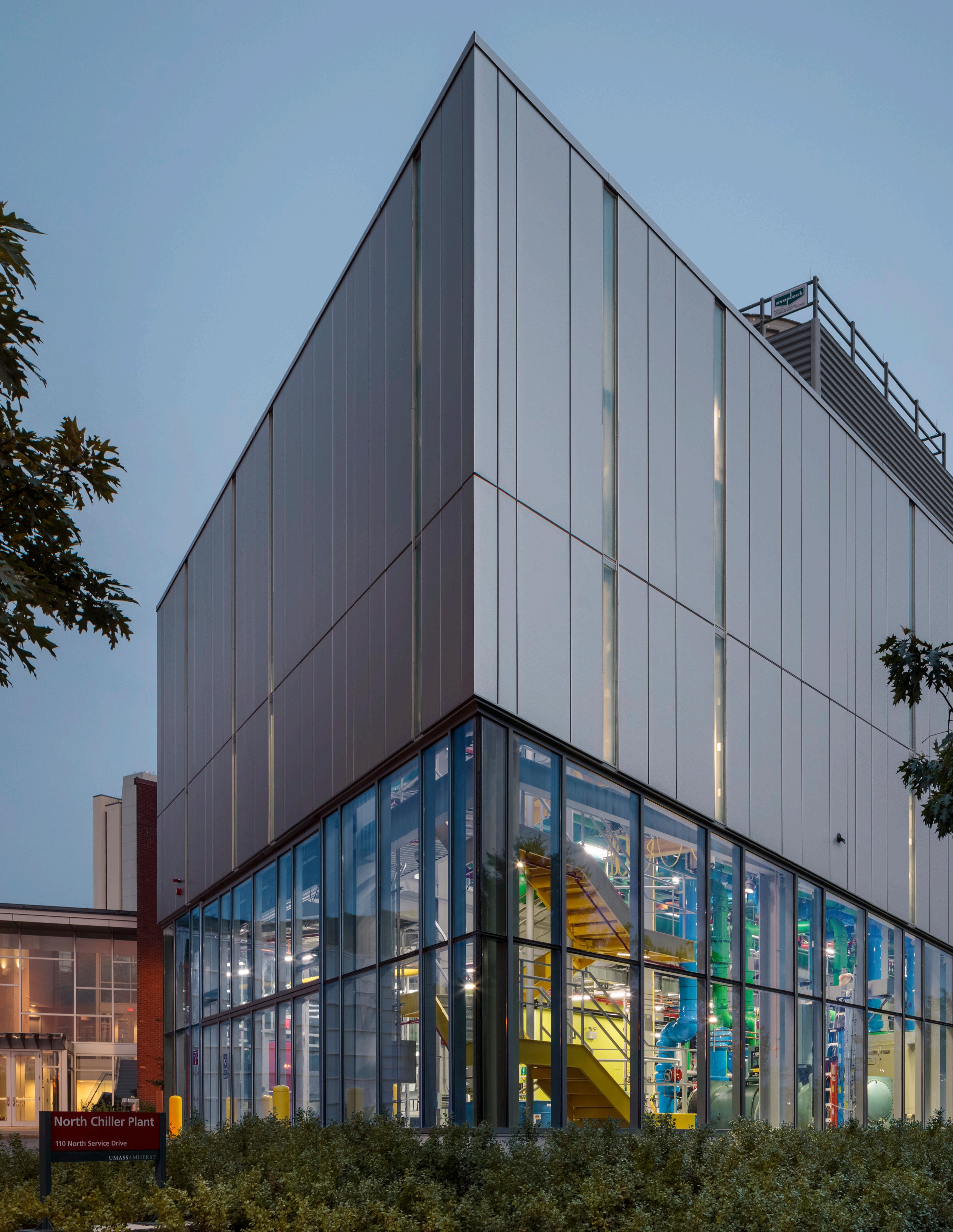 The new 10,592-square-foot chiller plant, a component of the university’s 2012 Campus Master Plan, is designed to increase the reliability and capacity of chilled water service throughout the growing north campus core by reimagining the existing regional plant it replaces.