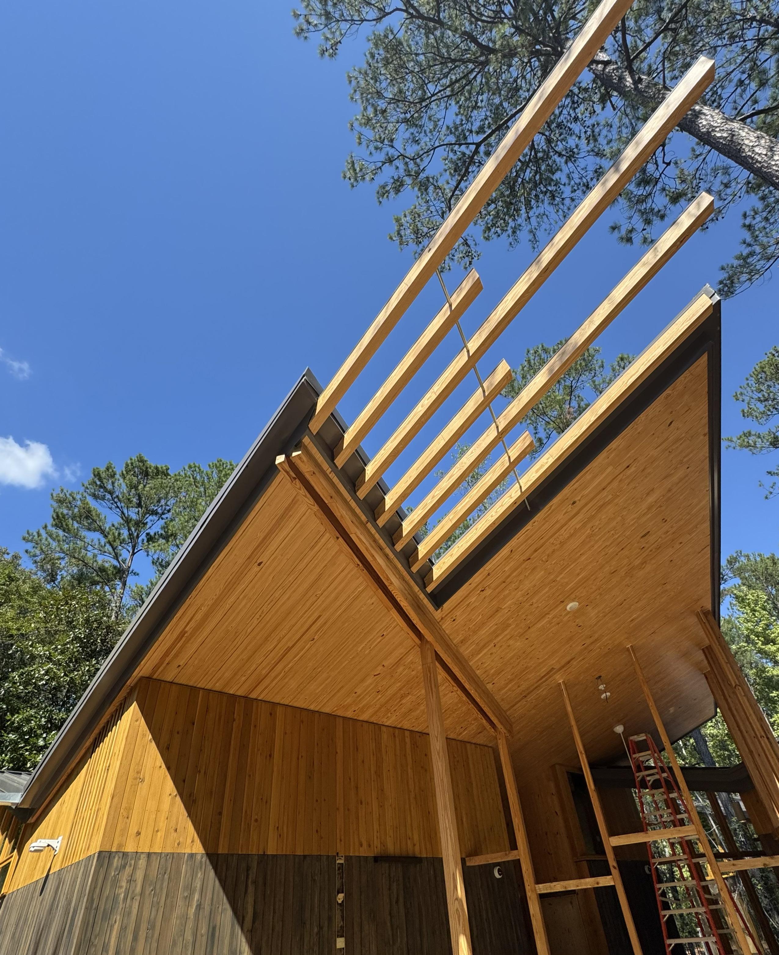 Constructed from locally harvested timber, the building celebrates the potential of wood – aesthetically, economically, and environmentally. It will incorporate cross laminated timber (CLT) produced in nearby Dothan, Alabama with Alabama wood as a demonstration of this new, sustainable building product with great potential for the state’s forestrybased industries. Exposed natural wood ceilings, walls, floors and open decks make sustainable forestry a tangible part of this outdoor based school experience while minimizing the embodied carbon footprint of the project.