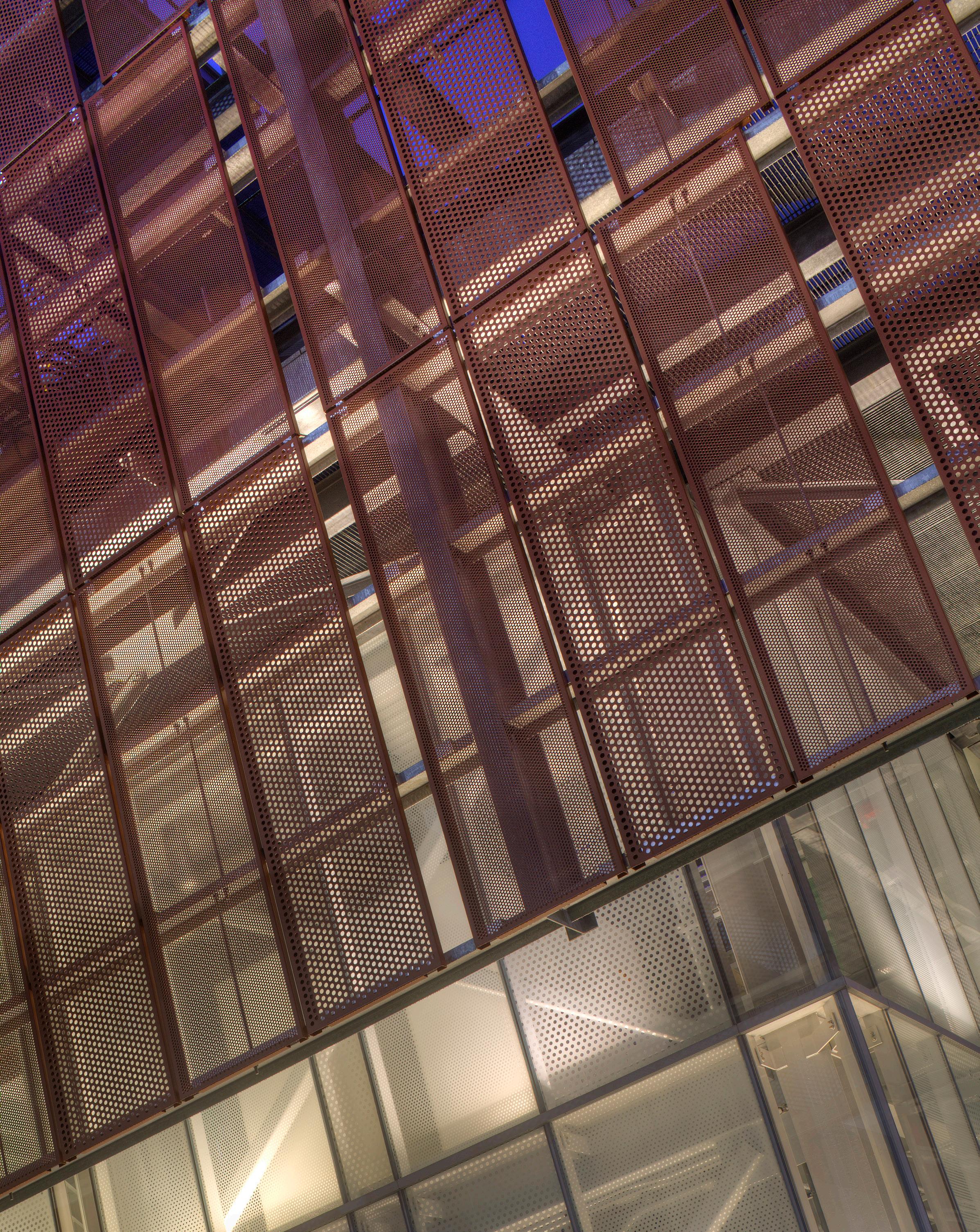 “Sited on a campus where people would prefer not to see a typical plant, this structure represents successful “skin deep” design, with perforated panels that let light play against the facade. It could have been a dumb box, but instead represents innovation in an infrastructure project. It’s extremely well done and restrained. We appreciate not just its parts and pieces, but the craft of assembly, its proportions, and the palette. This is beautiful work–for a chiller plant.“