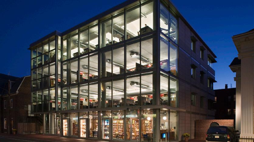 In a cold climate, Anonymous Hall at Dartmouth College is a near net-zero building for faculty offices, a café and administration. Contributing to the efficient design are a third party solar canopy covering a roof terrace, very high R value walls and an advanced curtain wall- triple paned glass with expanded metal inserted for solar protection making it the most advanced glass wall we have designed or observed in the United States. Other new buildings on campus have averaged an Energy Use Index of 75 BTU/sf/yr. This building has a projected EUI of 9 BTU/sf/yr.
