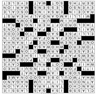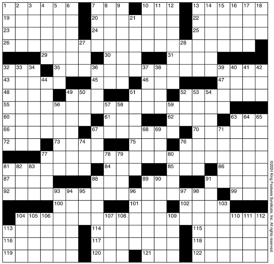 79 Conde -80 User-edited website 81 Rescue squad VIP 82 “-- -di-dah!” 83 False story 88 Projecting curves on saddles 89 By the day 90 Huffington of HuffPost 91 So to speak 93 Wise-acting 94 Thick-skinned critters 95 Day, in Chile 96 Studly guys 97 Abbr. on a bad check 98 End a vacation 103 Mother-of-pearl 104 Surfing need 105 Cake finisher 106 Holy Week’s time 107 Eldest of the Brady boys 108 Helper: Abbr. 109 For fear that 110 Half a train track 111 -- gin fizz 112 Camp shelter 113 Yank’s rival Fourth-Estate Fantasy SUPER CROSSWORD 934127685 671358249 825964713 467583192 512479368 389612574 258791436 793246851 146835927 8721 48965732 5687932 76981 8976453 73456 6523478 32185647 4367 36 Sudoku Solution Puzzle Answers 71 95 2 61 6453 74 7 3 3 36 4 5 1 9 2 © 2024 Syndicated Puzzles 34126 6 947 51 5238 92 871 1 63592 © 2024 Syndicated Puzzles STR8TS Easy How to beat Str8ts Like Sudoku, no single number 1 to 9 can repeat in any row or column. But... rows and columns are divided by black squares into Each compartment must form a a set of numbers with in any order, eg [7,6,9,8]. Clues in black cells remove that number as an option in that row and column, and are not part of any straight. Glance at the solution to see how ‘straights’ are formed. SUDOKU Tough Sudoku To complete Sudoku, fill the board by entering numbers 1 to 9 such that each row, column and 3x3 box contains every number uniquely. For many strategies, hints and tips, visit www. sudokuwiki.org. Word Search on page C19