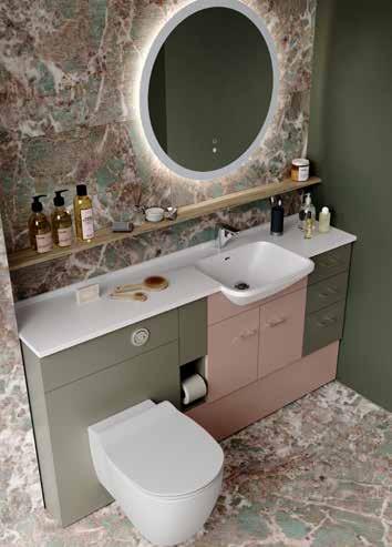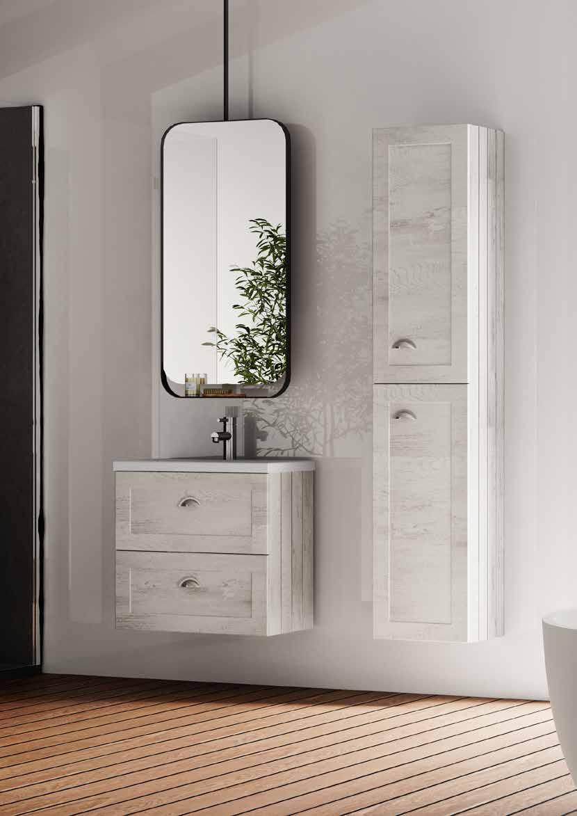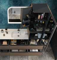 VENUS (Dimensions page 99) VENUS602DPRM Venus 2 Drawer Unit and white ceramic basin with MODAWCWH2070PU WC unit & 280MAXTALLPM in M441 Santal. MIFORMR Round Mirror. 42 www.ambiancebain.co.uk 43 VENUS