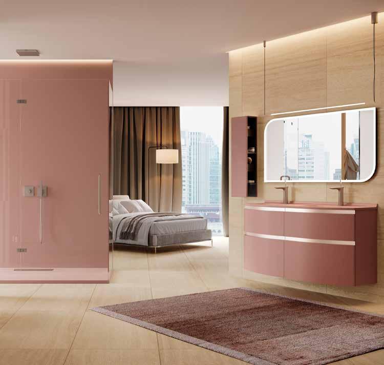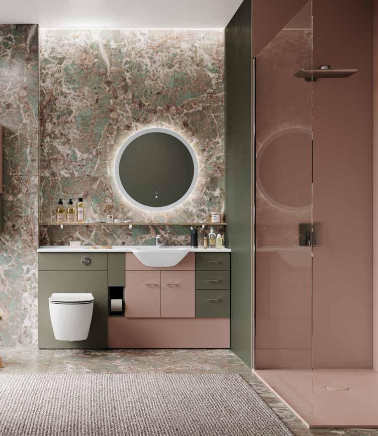 cm and Tall Unit PANACOL35D. Colours F53 Vesuvio, SMO317 Kaolin Satin. ELEGANCE PLUS Shower Tray, ELEGANCE wall panel. Colour SMO317 Kaolin Satin.