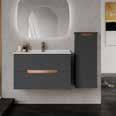 AVI105L 105cm reduced basin unit, Left Hand with AVICOL2F50 Wall Unit in F89 Cashmere, SMO267 Nougat Satin. Mirrors AVIMI105 width 105 cm.