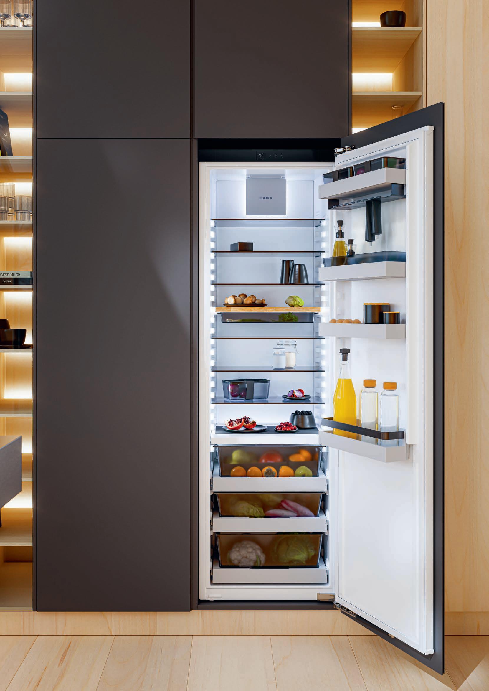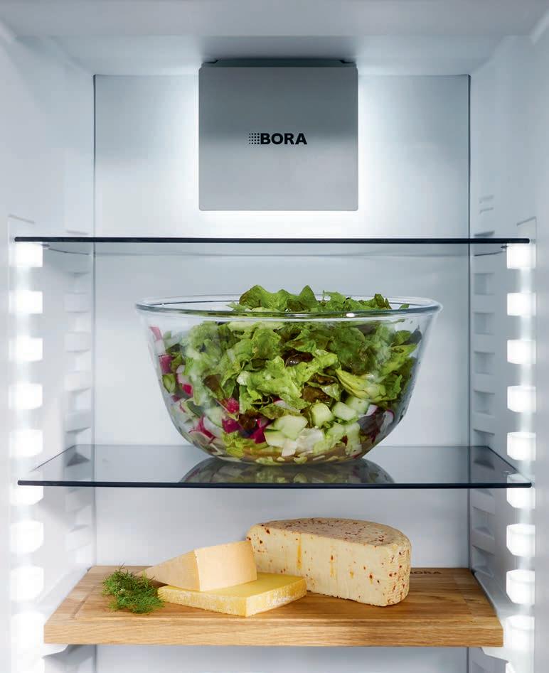 The BORA refrigeration systems use optimum air circulation at all times to keep food fresh for longer. Odours are also largely neutralised by the integrated BORA Cool odour filter.