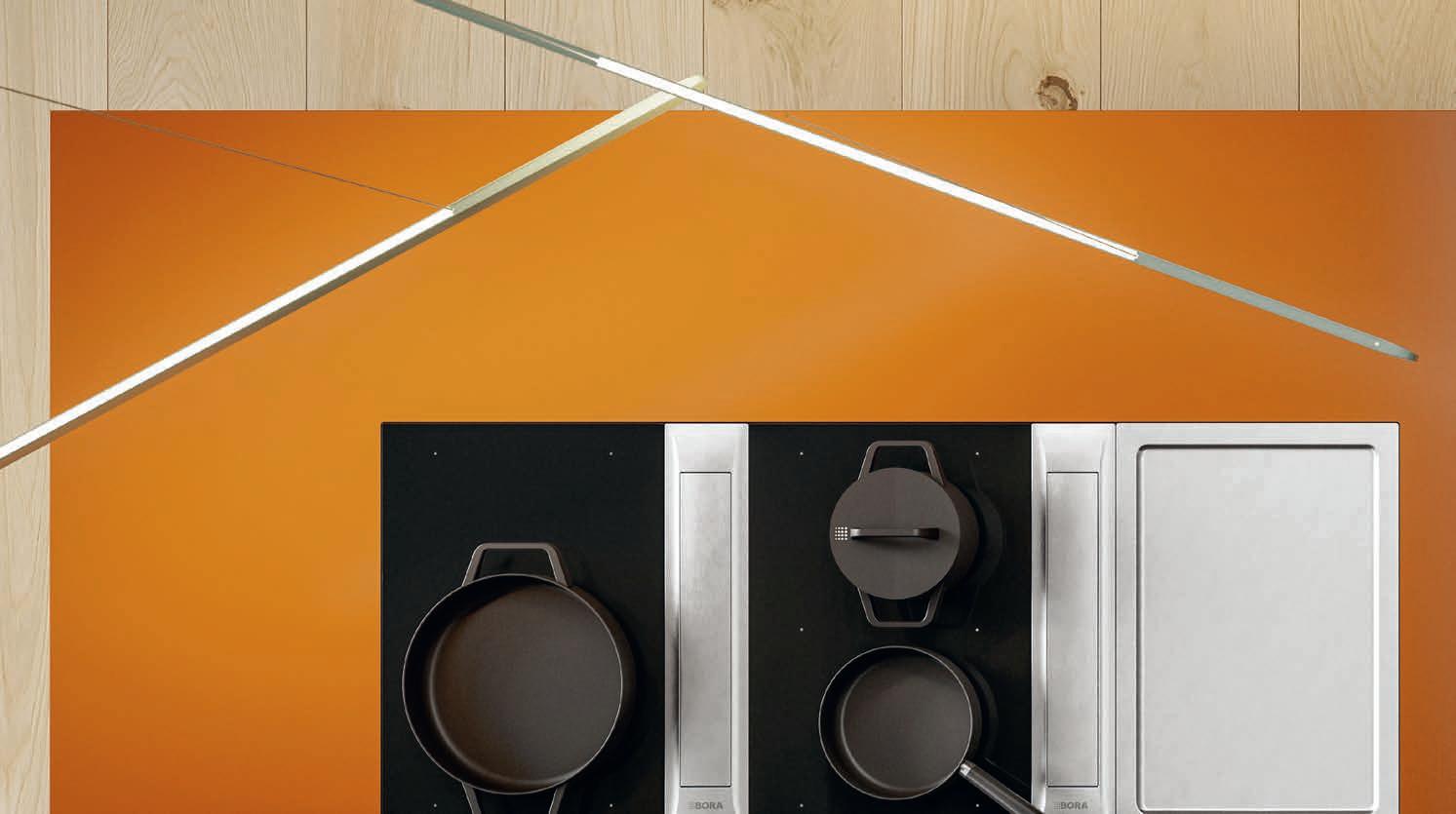 Functional yet emotional. Subtly restrained yet naturally sophisticated. It’s not just the people who use them that give life to kitchens. How can you cook without the right lighting? Can you imagine hosting a dinner in the dark? BORA lighting creates the optimum lighting mood for all situations.