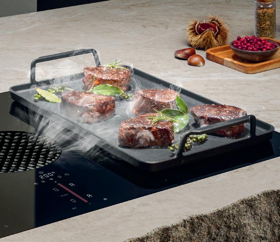 Impeccable workmanship ensures rapid heat distribution when it is used on surface induction cooktops. Its size and properties mean that the grill pan can also be used in the BORA X BO without any issues. What’s more, the grill pan is optimally designed for use with the new BORA X Pure, which enables temperature-specific frying using the Fry function. The scaleddown design allows the grill pan to blend in seamlessly with the BORA product range.