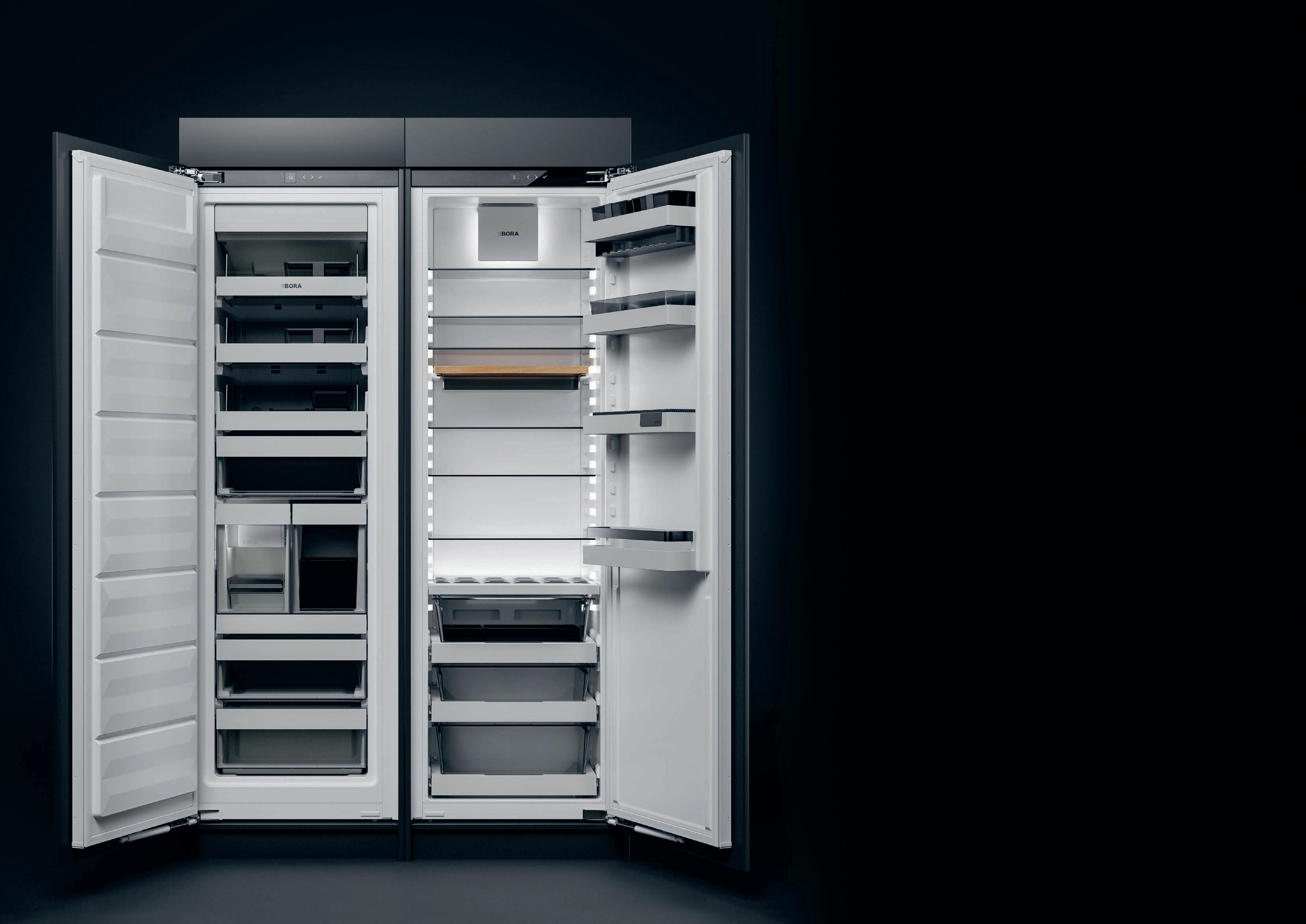 With BORA products, you can cook and bake like a pro and store your food in a well-organised and effectively refrigerated manner. You can also achieve consistent cooking results and enjoy optimum heat distribution and air guidance. What’s more, BORA products offer you maximum storage space and individual design freedom. Premium materials impress with their durability and catch the eye as design highlights.