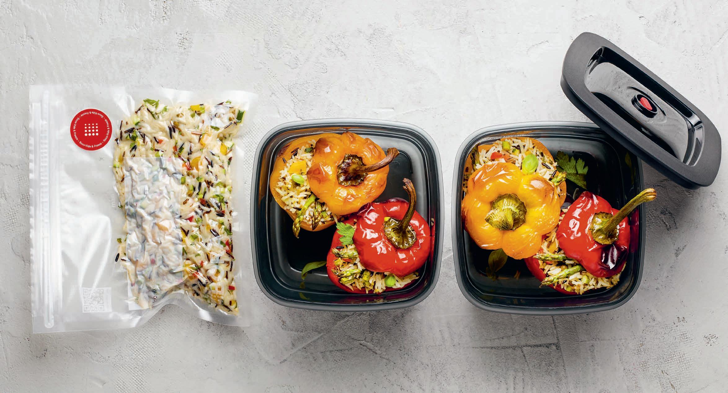 You may well have heard of meal prep and batch cooking. Both of these pre-cooking concepts are designed to make everyday healthy eating as simple and stress-free as possible. With meal preparation (‘meal prep’ for short), ready-to-eat dishes are fully prepared in larger quantities then portioned up and vacuum sealed or packaged in suitable airtight containers and placed in the refrigerator to be eaten within the next few days or stored in the freezer for even longer. If necessary, meals such as soups or stews can even be gently defrosted and heated up after several weeks.