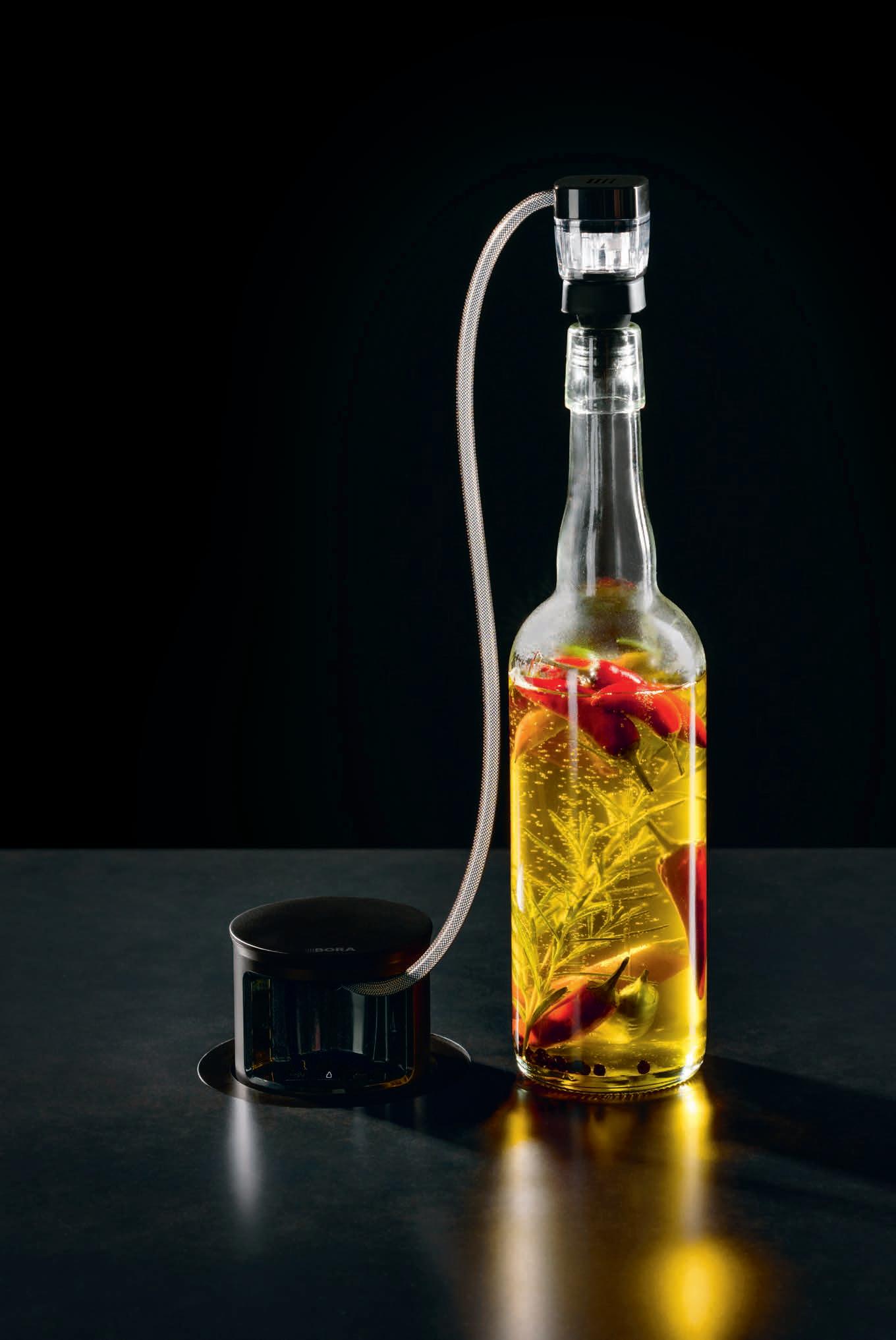 The marinating ring, which is placed on one of the associated vacuum boxes, creates a vacuum. bora.com/qvac