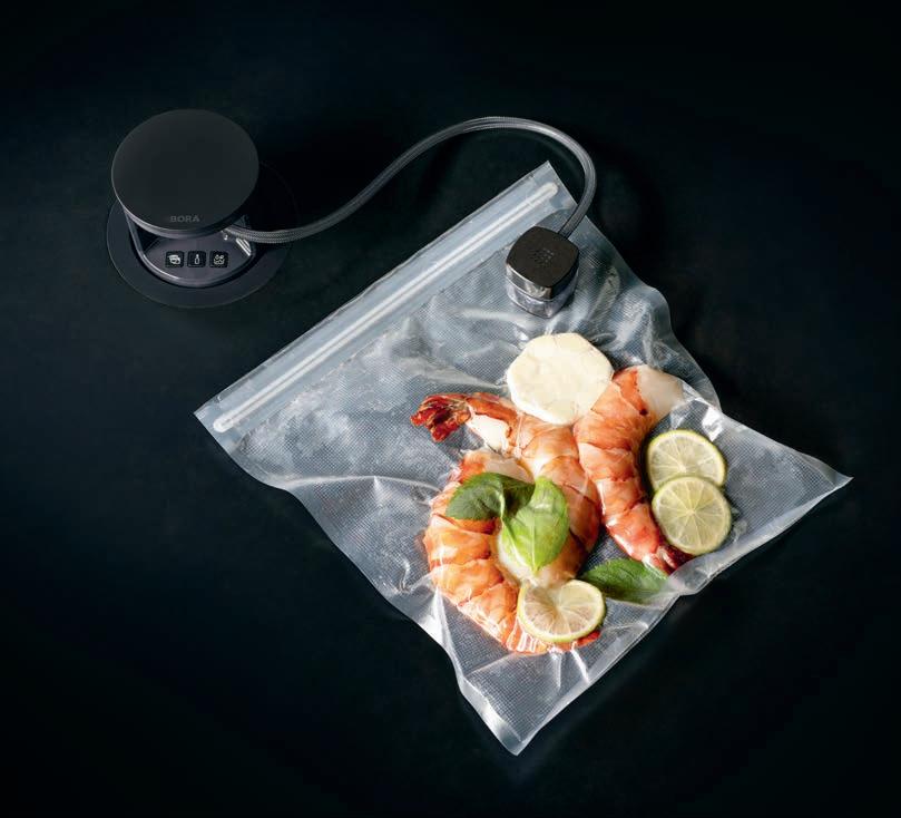 The BORA QVac built-in vacuum sealer keeps food fresh for longer and extends its shelf life. Our built-in vacuum sealer is also a must-have when it comes to vacuum sealing for sous-vide cooking, marinating food and preserving liquids. The ideal accessory for cooking and refrigerating with BORA.