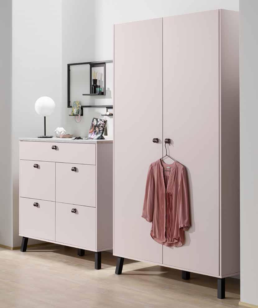 Tone in tone: the silky matt lacquered framed front captivates with meticulous craftsmanship in the subtle shade of greige. Country-style handles, glass display cabinets and visible sides with panel effect underscore the appealing Cottage Style.