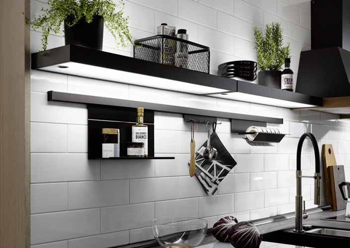 CONFORT PLEIN D’IDÉES – Qu’il s’agisse d’un équipement de crédence noir mat ou d’une organisation intérieure sophistiquée sur mesure, les lampes DEL mettent en lumière les idées novatrices.