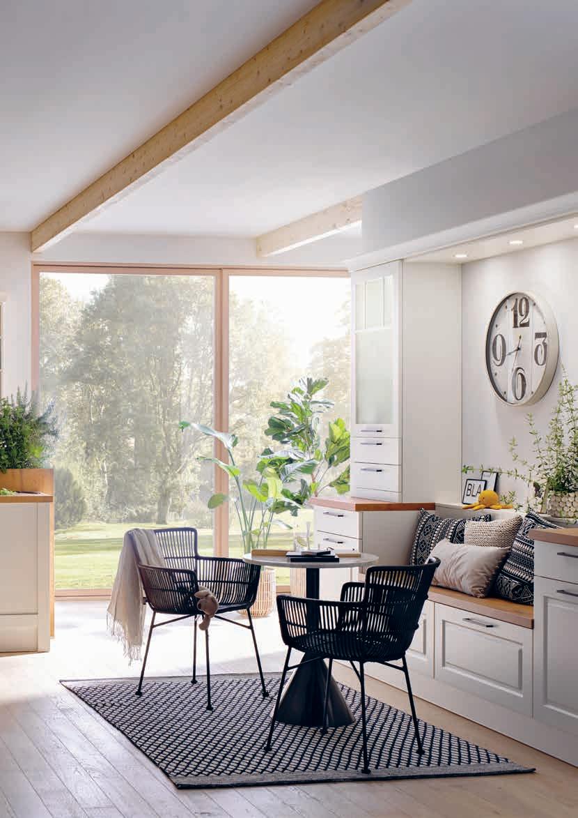 Heerlijke frisheid Wit, glas en lichtaccenten zorgen voor een lichte sfeer. De slim ontworpen hoekkast Space Corner bewijst zijn opbergtalent elke dag opnieuw. Verheug u op een nieuw woongevoel!
