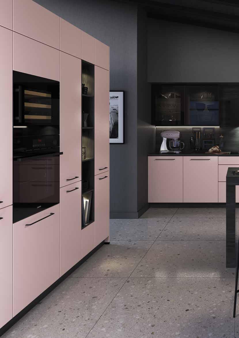 Whether with smooth or raised infill panel – framed fronts are a statement of style and convey a homely feel. SOPHIE enters the stage with a particularly refreshing and modern look. MARA demonstrates a love of detail. The silky matt lacquered surfaces give both models an exquisite look, feel and finish to guarantee a delightful ambience second to none. Complementing both ranges, our lineup features surrounding elements in matching colour, such as side, top and bottom panels, shelves and plinths. All made to measure and exactly to your liking.