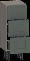 Carcasses All carcasses and fascias are pre-drilled and marked for fittings, with fully adjustable all-steel soft-close hinges on doors and soft-close drawer runners featuring four-way fascia adjustment. Carcasses are supplied with hinges, wall-fix brackets, and fittings; base units include adjustable legs and plinth fittings.