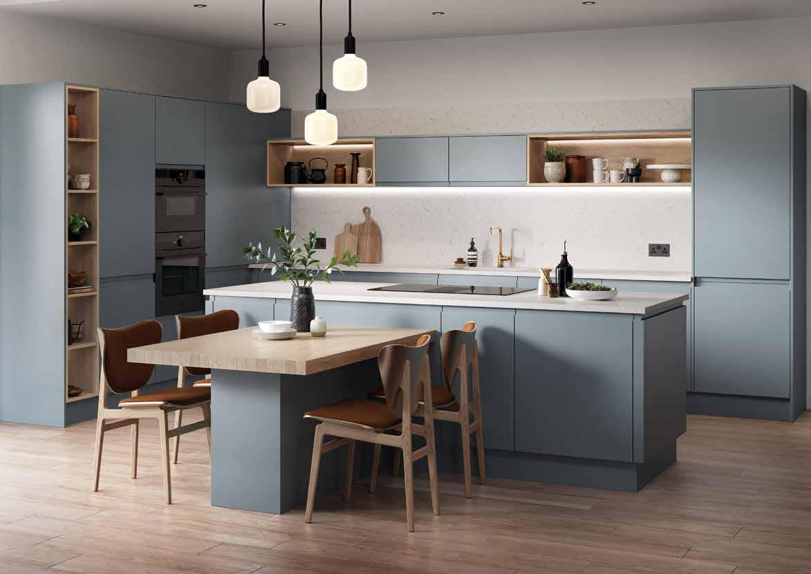 These stunningly simple slab doors in a smooth, super matt finish are the ultimate in contemporary cool.