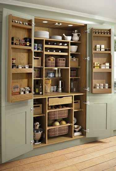 To maximise space and provide fully accessible storage, a range of practical and decorative storage solutions are available in a variety of different sized base, wall, dresser and larder units.