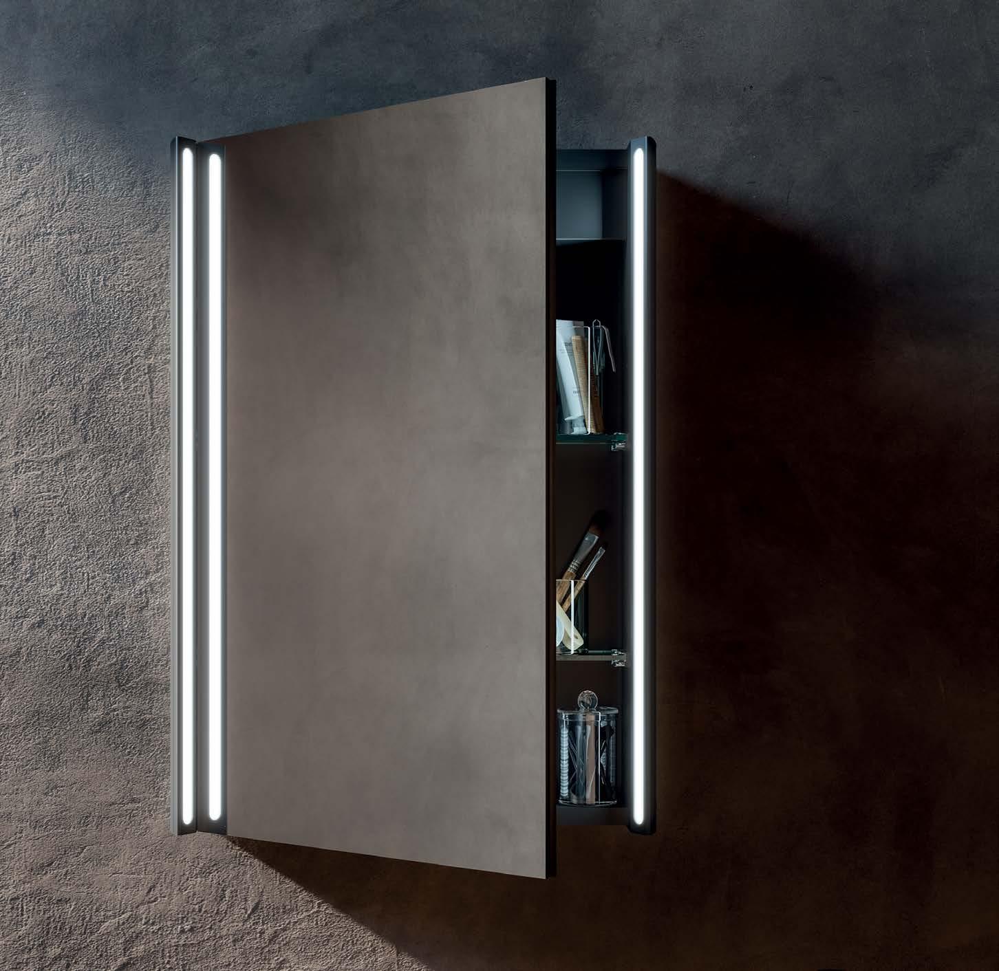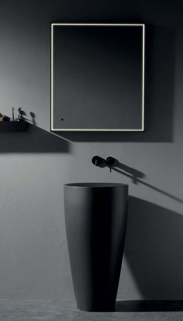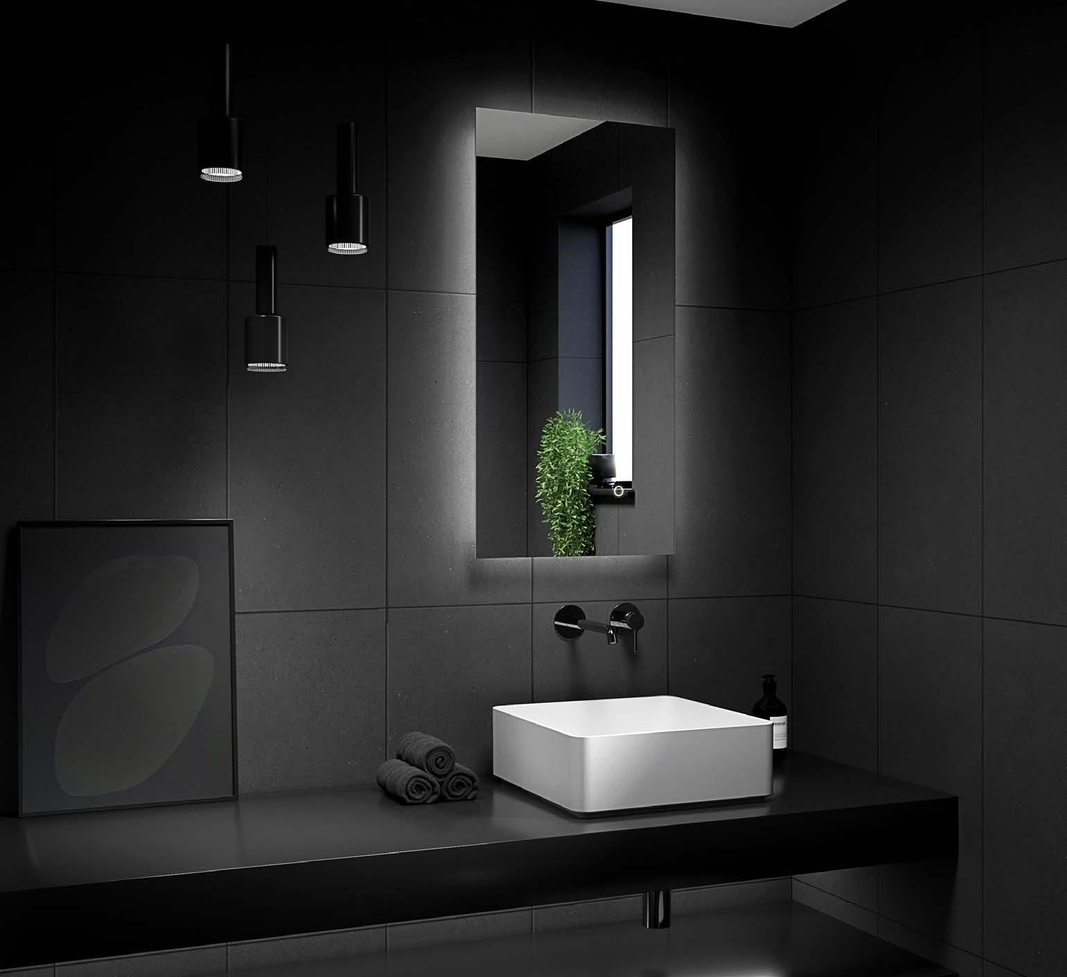 Ghost is a project in which we firmly believed in; a concept of a totally concealed lighting source to be applied to mirrors and mirror cabinets; either behind the reflective silvering of the mirror face or behind the black frame. A solid technical team and innovative materials permitted us to reach this goal.