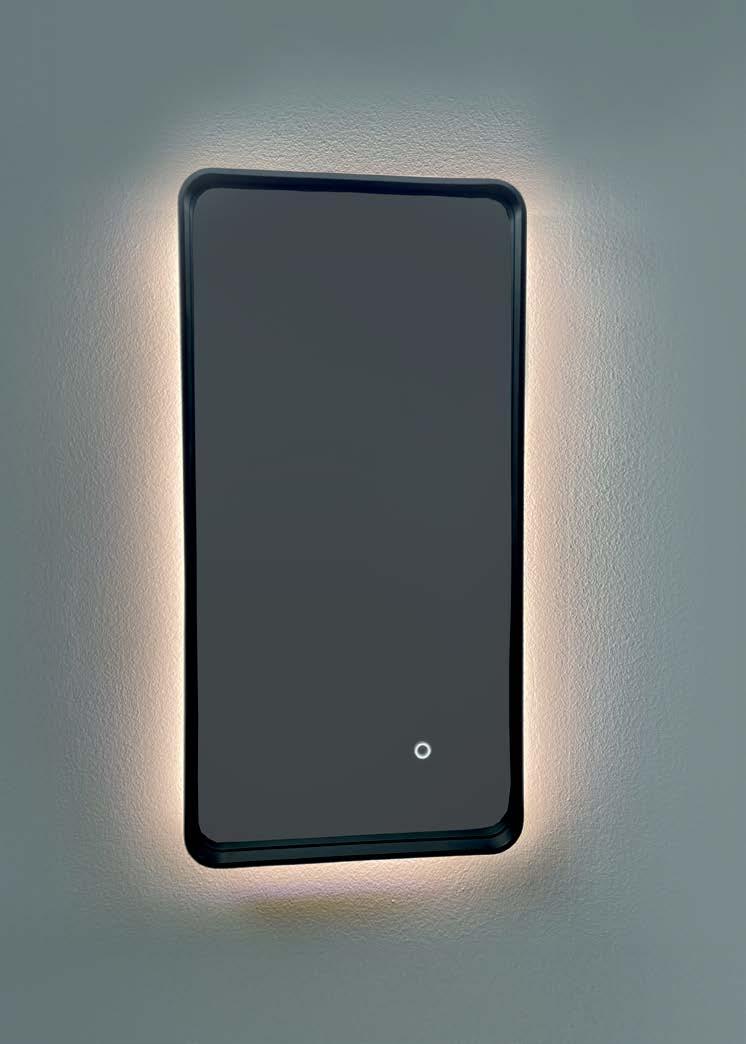 The illuminated touch On/ Off button is flush to the mirror for a harmonious look. With Dualwhite mirrors, the touch On/Off button also controls the LED light setting.