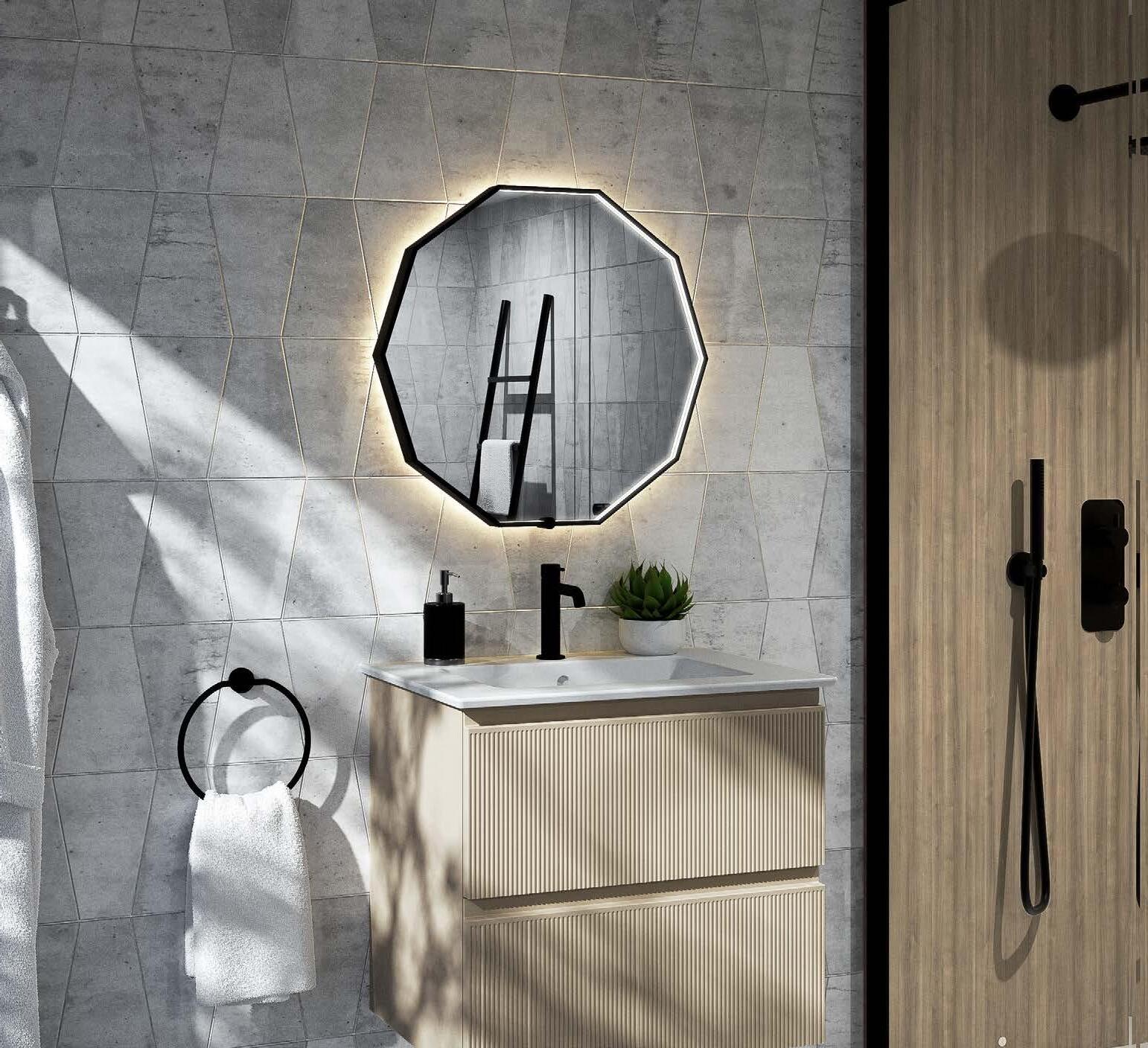 Some mirrors and cabinets have LED lighting inserted into the metal frame for a soft lighting effect which spreads to the surrounding area. The ambient lighting adds an element of sophistication to your bathroom setting.