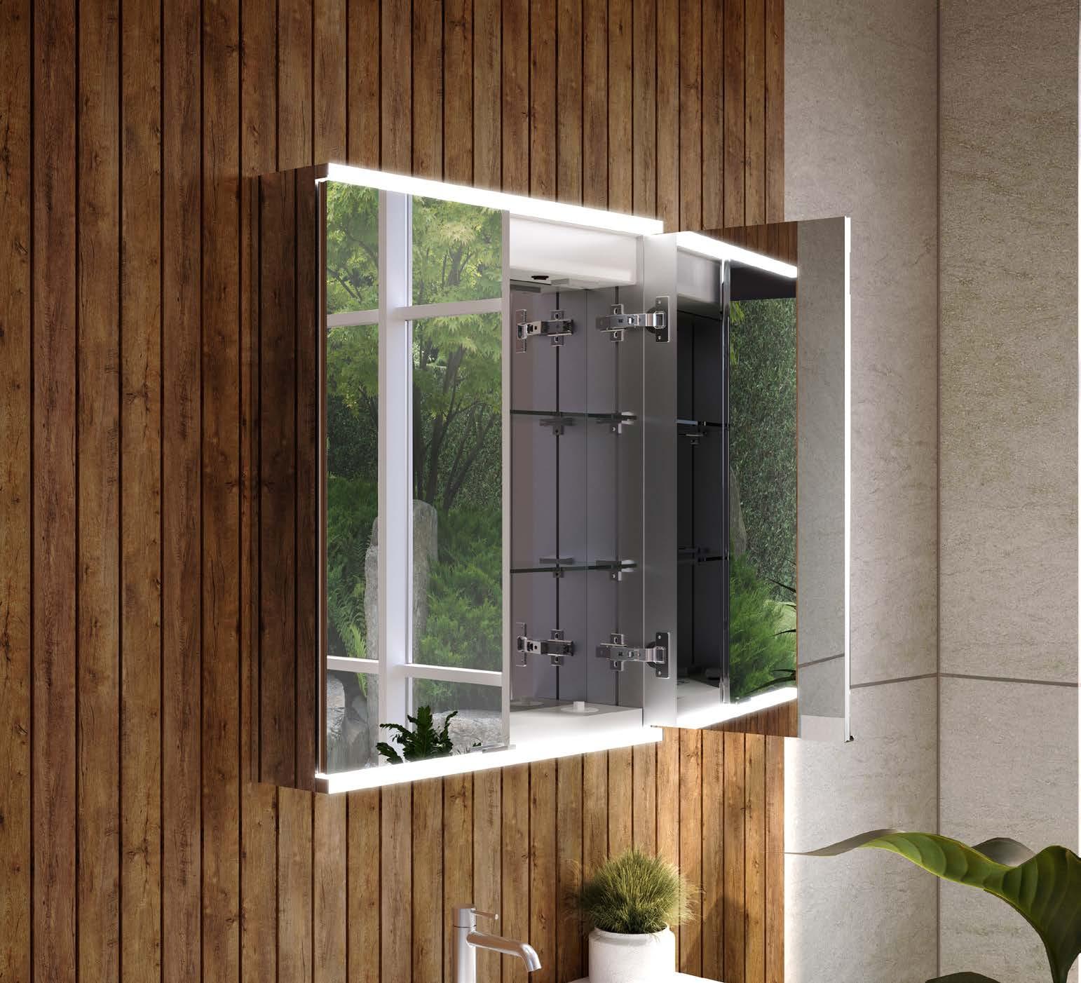 Integrated shaver socket. Integrated USB socket. All mirrors and cabinets are easy to install. The “X Hanging” system makes it possible to hang some mirrors vertically and horizontally for flexibility in your bathroom space.