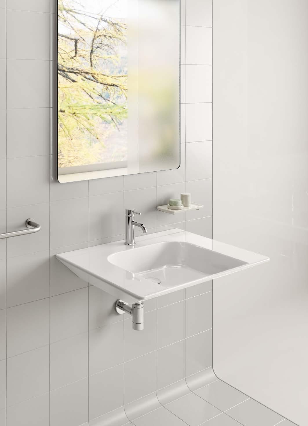 Community also includes a line for differently abled people: the washbasin 70 answers especially to the need to provide service solutions and may be combined with the extended wall hung WC to allow easy access for the less abled.