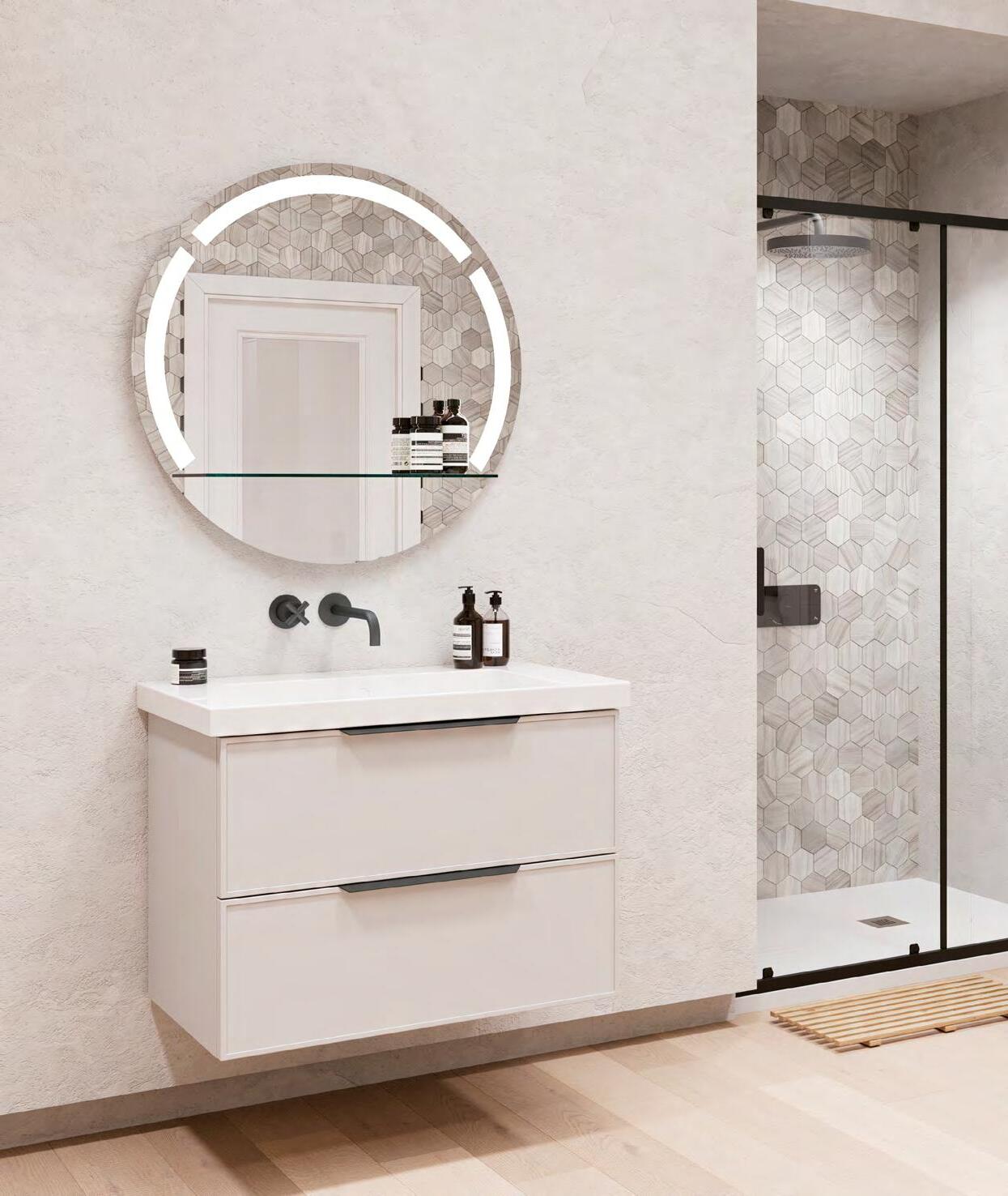 For the total look, matching wall cabinets and bath panels are available in the same finishes as basin units.