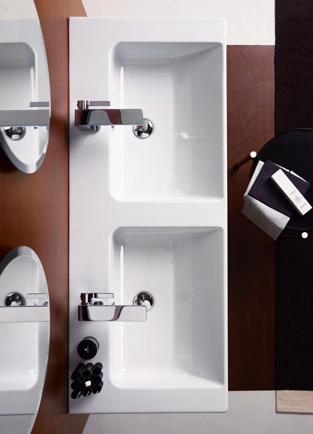 well as semi-built-in washbasins. Matching WC’s and bidets come with the special “Dual Glaze finishing that combines an opaque glaze on the outside of the sanitary fixture with a shiny antibacterial extra glaze on the inside. An exclusive feature that ensures maximum hygiene.