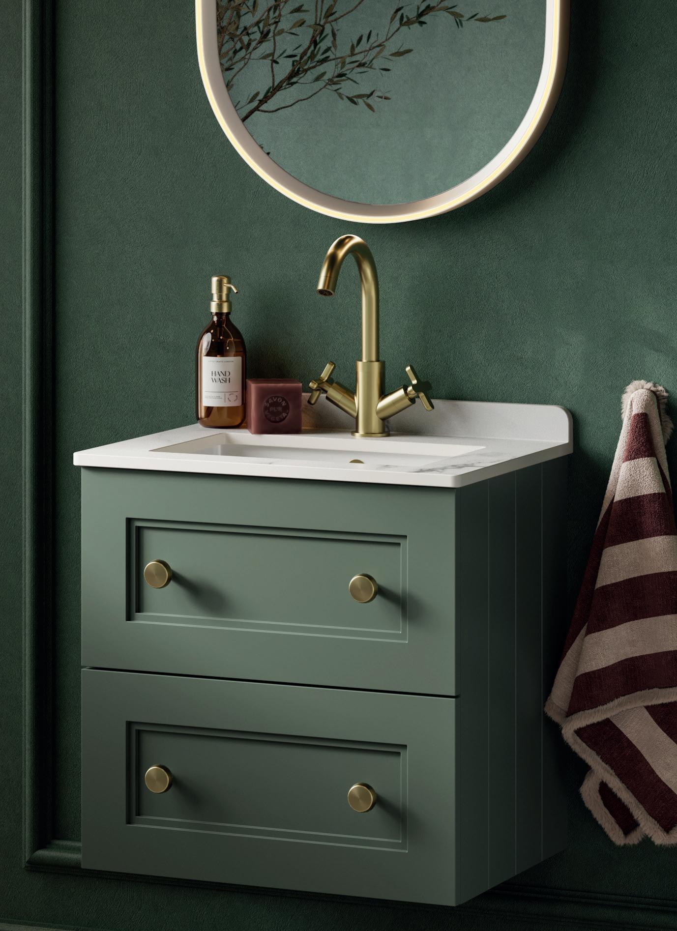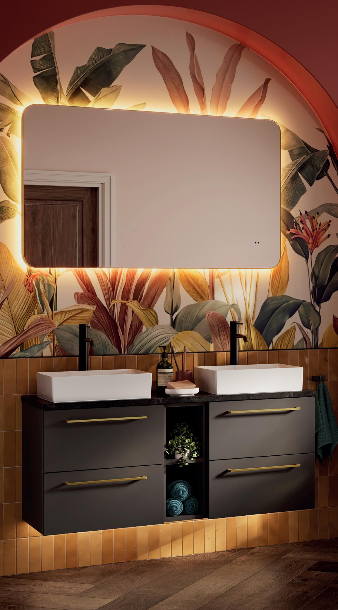 Transform your space with richly coloured furniture, complemented by brushed bronze, brass, or black brassware. Perfectly co-ordinated for a refined, seamless finish. Add a statement mirror to finish the look.