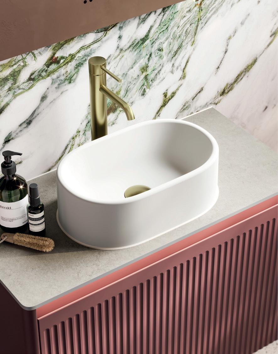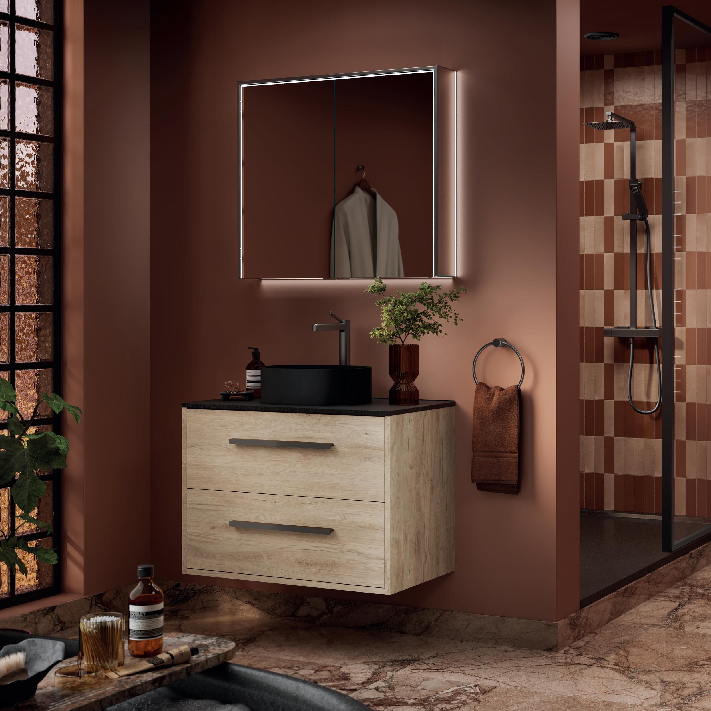 A fresh take on the industrial trend, this look celebrates authenticity, craftsmanship, and the beauty of balance. Pair black brassware with a pink concrete basin, or a textured basin on our natural wood furniture.